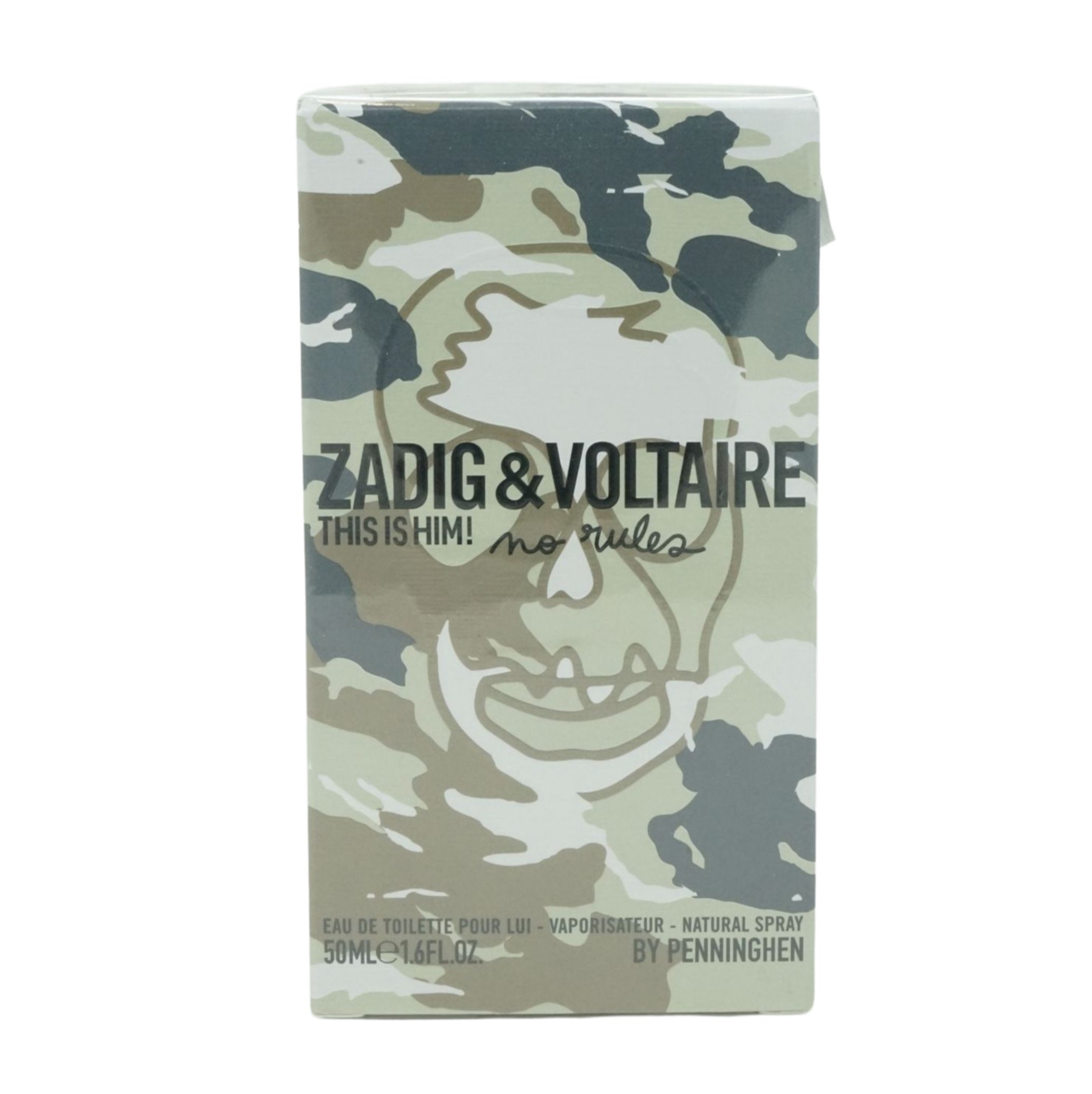Zadig & Voltaire This is Him! No Rules Eau de Toilette 50 ml ist ein rebellischer, kraftvoller Herrenduft, der Konventionen sprengt und absolute Freiheit verkörpert Die Komposition startet mit einer frischen Kopfnote aus Zitrusfrüchten und schwarzem Pfeffer, die für eine belebende Dynamik sorgt In der Herznote entfaltet sich Sandelholz, das dem Duft eine markante, holzige Tiefe verleiht Die Basisnote aus Vanille und Weihrauch sorgt für eine rauchige, sinnliche Wärme, die lange anhält Perfekt für Männer, die ihren individuellen Stil mit einem ausdrucksstarken Duft unterstreichen möchten