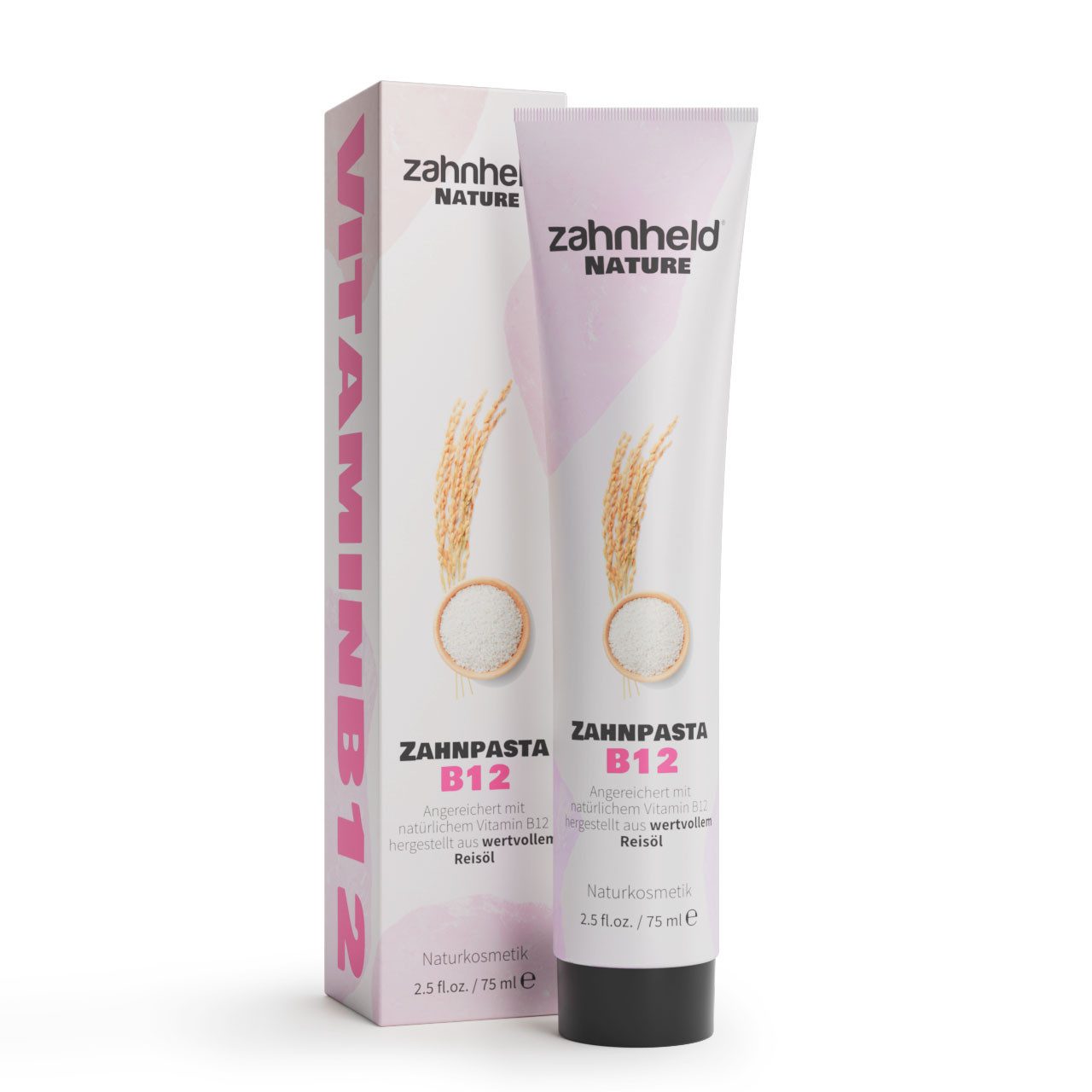 Unsere Zahnheld Zahncreme Vitamin B12 mit ihrem 8-Fach-Basis-Wirkstoffkomplex pflegt und reinigt die Zähne und Zahnfleisch.