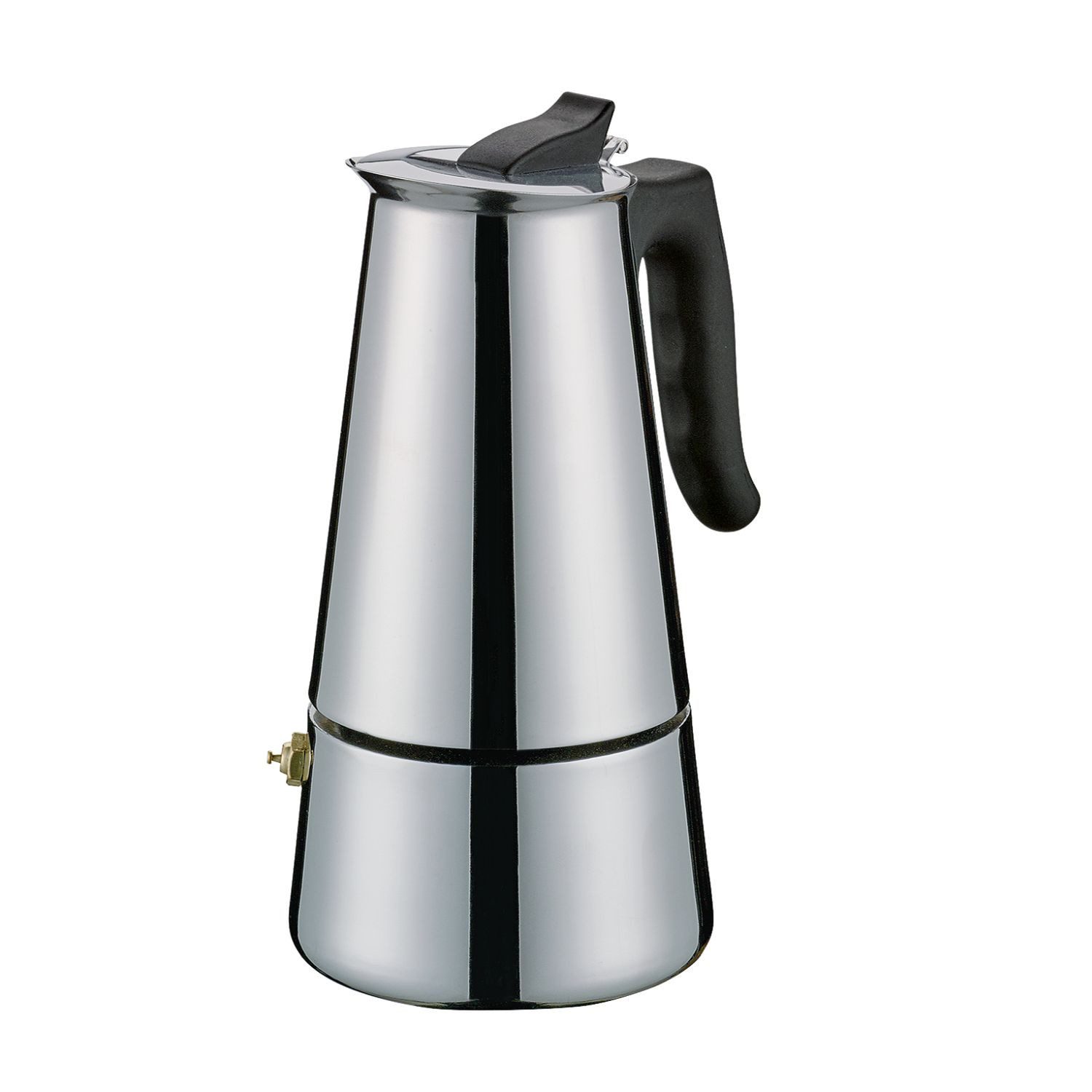 Warnhinweise | Sollte dieses Produkt an andere Personen weitergegeben werden, stellen Sie sicher, dass die Bedienungsanleitung mit ausgehändigt wird. Unzureichende Reinigung und Pflege, falsche Handhabung oder unsachgemäßer Gebrauch beeinträchtigen die Sicherheit des Espressokochers. In diesen Fällen übernimmt cilio keine Verantwortung für eventuell auftretende Sach- oder Personenschäden. Dieses Produkt ist nur für den Hausgebrauch bestimmt. Verwenden Sie es nicht ungeschützt im Freien. Betreiben Sie den Espressokocher nur unter unmittelbarer Aufsicht und benutzen Sie ihn ausschließlich für den vorgesehenen Zweck. Halten Sie Kinder von dem Espressokocher fern, solange dieser in Gebrauch oder noch heiß ist. Verwenden Sie den Kocher nicht ohne Wasser im Unterteil. Betreiben Sie das Produkt ausschließlich mit Wasser und keinesfalls mit Milch oder anderen Flüssigkeiten. Für eine ordnungsgemäße Funktion des Sicherheitsventils darf sich dieses nicht im Wasserbereich befinden. Achtung! Füllen Sie das Unterteil nur maximal bis kurz unter das Sicherheitsventil mit Wasser. Verwenden Sie nur reines, nicht zu fein gemahlenes Espressopulver. Kaffeeersatz oder Kaffeeextrakt enthalten klebrige Stoffe, die den Kocher verstopfen. Auch zu fein gemahlenes Espressopulver kann das Sieb des Kochers verstopfen Beim Auslösen des Sicherheitsventils kann es zu einem heißen Dampfausstoß kommen. Achten Sie darauf, dass das Ventil nicht auf den Benutzer oder andere Personen gerichtet ist. Benutzen Sie den Espressokocher nur auf den auf der Verpackung angegebenen Heizquellen. Wählen Sie die Размер der Heizquelle dem Bodendurchmesser entsprechend. Achten Sie beim Kochen auf Gaskochstellen darauf, dass die Flamme nicht seitlich am Kocher hochsteigt. Achten Sie beim Kochen auf Induktionskochfeldern darauf, dass der Durchmesser des Kochfeldes und des Espressokochers möglichst übereinstimmen, da sonst die Topferkennung bei einigen Herdsystemen nicht aktiviert und das Kochfeld nicht betrieben wird. Verwenden Sie niemals die Boost Funktion. Wählen Sie immer eine mittlere Temperaturstufe, um ein Überkochen zu vermeiden und den Kocher zu schonen. Verbrennungsgefahr! Der Kocher wird bei Gebrauch sehr heiß. Bei Kontakt mit heißen Oberflächen besteht die Gefahr sich zu verbrennen. Bitte fassen Sie den Kocher nur am Griff sowie am Deckelknopf oder ggf. mit Topflappen oder Topfhandschuh an. Stellen Sie den heißen Kocher nur auf hitzebeständigen Oberflächen ab. Nehmen Sie den Kocher unverzüglich von der Heizquelle, sobald der Espresso in das Oberteil geflossen ist. Lassen Sie den Kocher nie trocken kochen. Hierdurch kann die Struktur des Metalls beschädigt und die Sicherheit für den weiteren Gebrauch beeinträchtigen werden. Öffnen Sie den Deckel nicht, bevor der Kochvorgang beendet ist. Schrauben Sie den Kocher nicht auseinander, bevor er von der Herdplatte entfernt wurde und vollständig abgekühlt ist. Sollte es sich bei Ihrem Espressokocher um ein Modell handeln, bei welchem der Espresso seitlich aus einem oder zwei Ausgussrohren herausfließt, stellen Sie je eine Tasse mit ausreichendem Füllvolumen unter die Ausgussstelle(n). Benutzen Sie den Espressokocher nicht, wenn dieser oder seine Bestandteile beschädigt sind. Wenden Sie sich im Reparaturfall an den autorisierten Fachhandel. Verwenden Sie nur Original-Ersatzteile. Achtung! Vergewissern Sie sich, dass Trichter, Sieb und Dichtungsring richtig eingesetzt sind und der Espressokocher fest verschlossen ist, bevor Sie diesen auf den Herd stellen. |