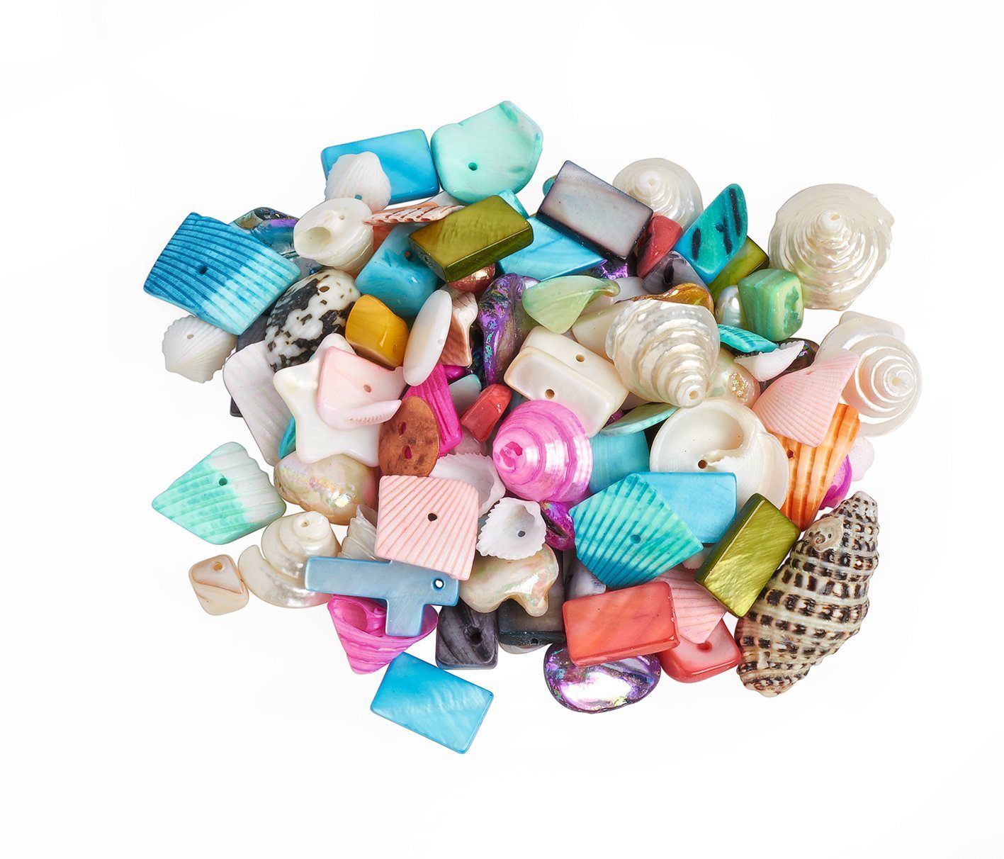 Die Packung enthält einen tollen 100g-Farbmix: Perlmuttperlen und Muschelscheiben aus der Schale verschiedenster Muschelsorten, die sich wunderbar zur Gestaltung der schönsten Schmuckstücke eignen.