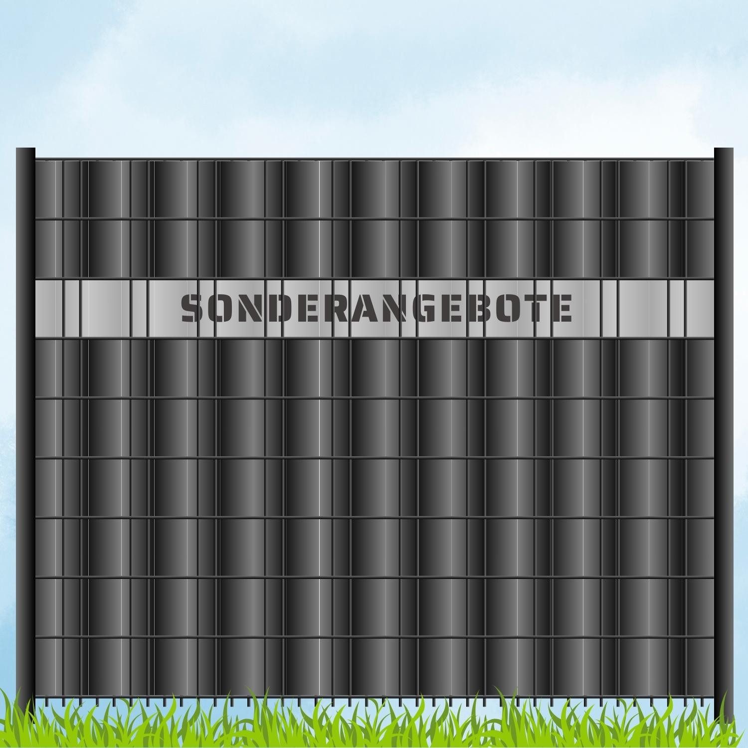 Lieferumfang | Sichtschutzstreifen mit Laser Beschriftung "SONDERANGEBOTE" |