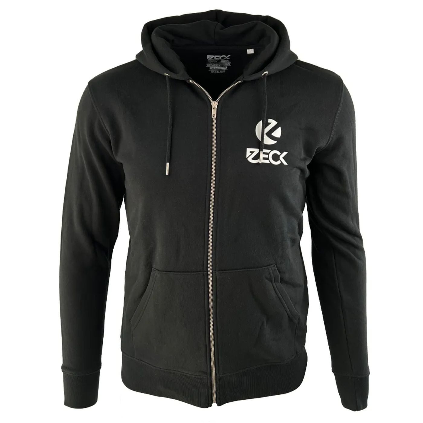 Zeck Big ZECK Back Zip Hoodie - Angelpullover - Der Pullover aus dem Hause Zeck ist ein guter Zip Hoodie, der neben dem Fischen auch bei weiteren Freizeitaktivitäten getragen werden kann. Er ist ausgestattet mit einer Kapuze, einem Reißverschluss und einer schwarzen Farbe. Außerdem hat er ein kleines, weißes Logo auf der Front und ein großes Logo auf der Rückseite.