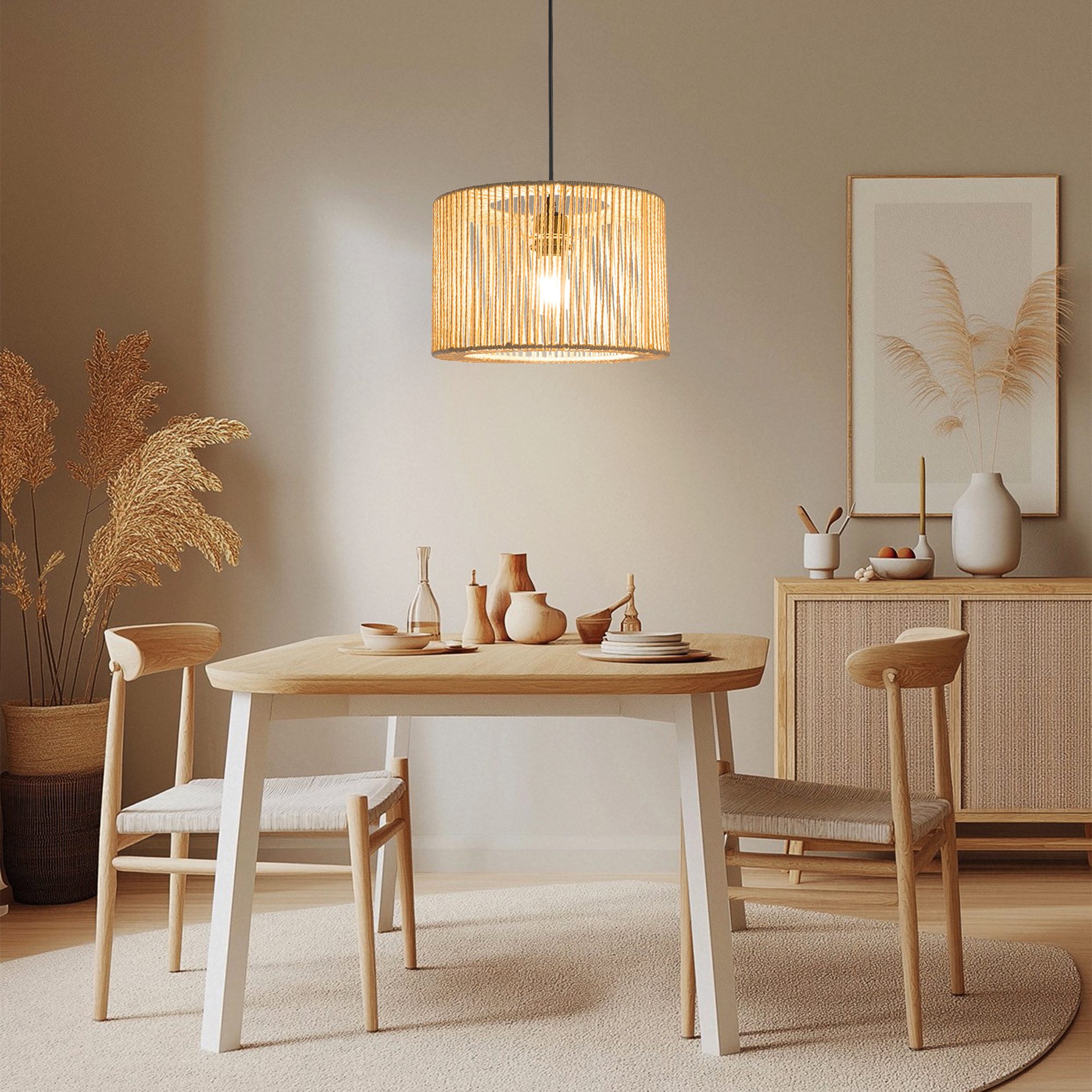Hochwertige Verarbeitung & Design: Der stabile Metallrahmen mit handgeflochtener Rattan-Struktur garantiert Langlebigkeit. Das natürliche Material dieses Lampenschirm Hängelampe erzeugt faszinierende Lichtspiele und ist ideal als stimmungsvolle Schlafzimmerlampe oder Esstischleuchte für ein blendfreies, weiches Licht.