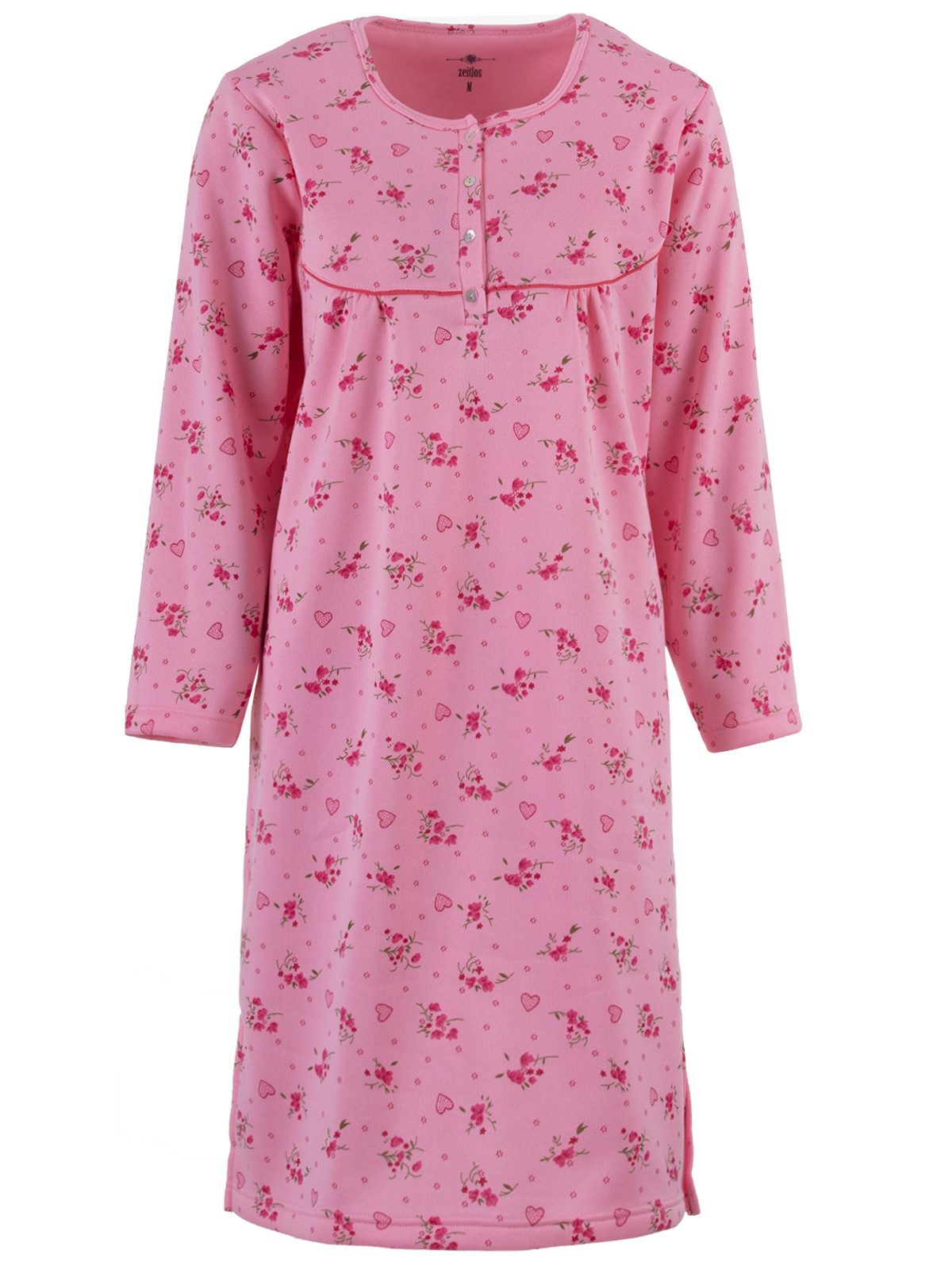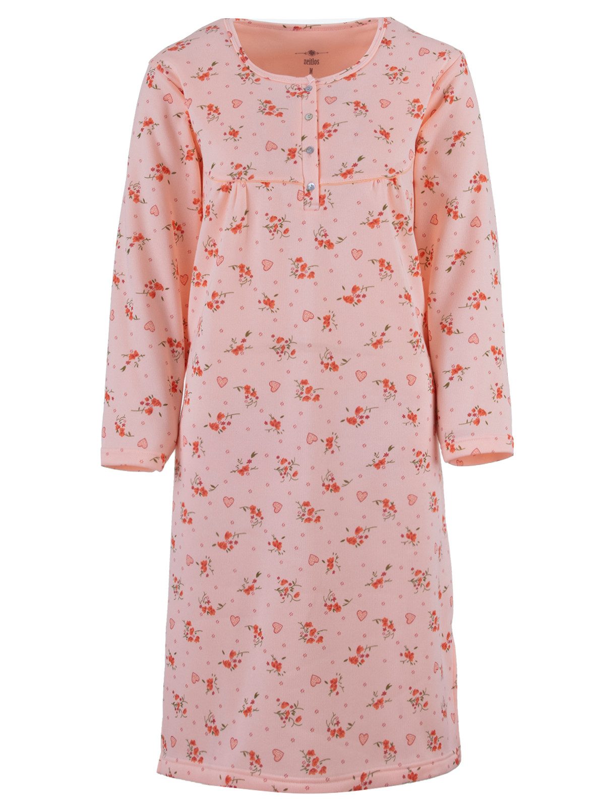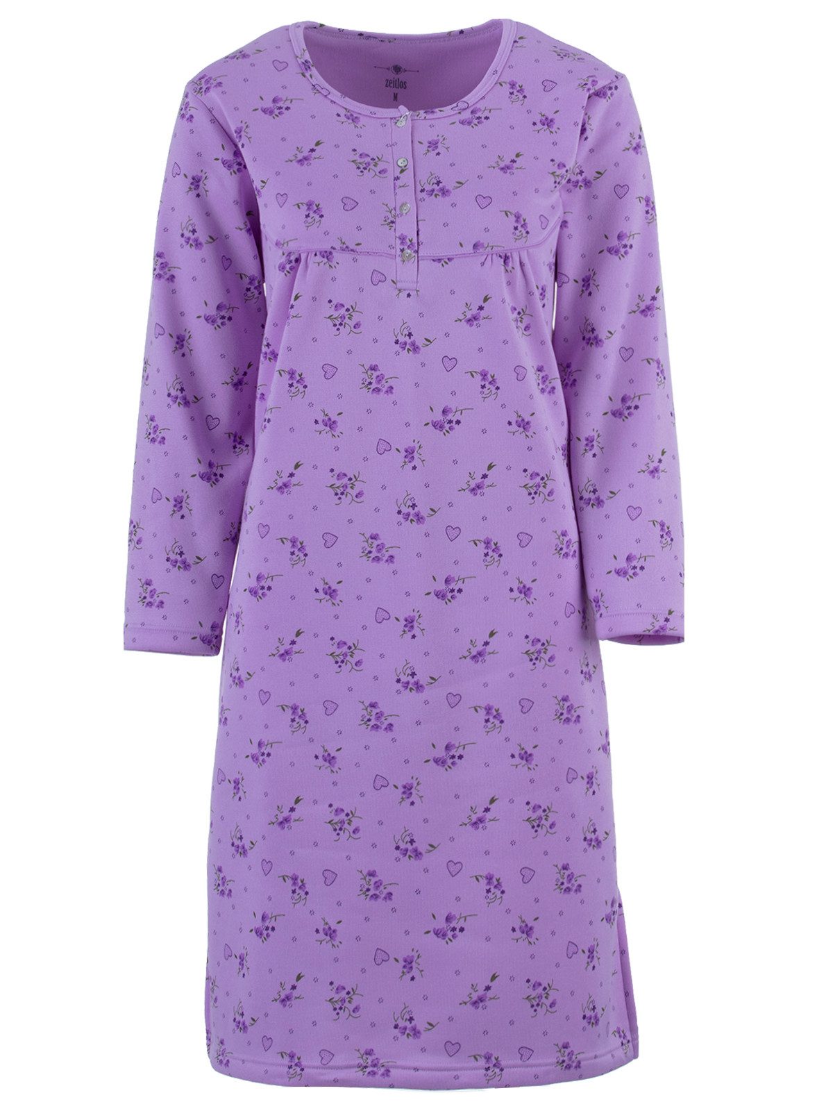 Das Nachthemd ist von innen angeraut wodurch es sehr weich und kuschelig ist, also ideal für die kühlere Jahreszeit. Die vier Knöpfe am Rundhalsauschnitt sorgen für einen komfortables an- und ausziehen.