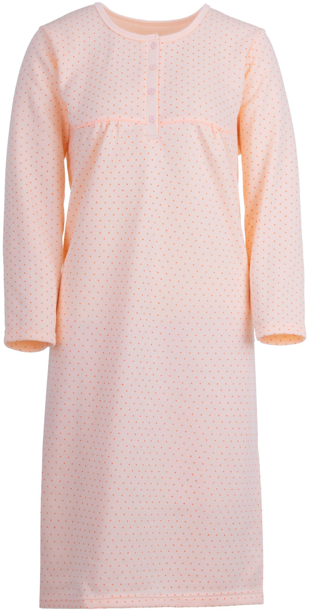 Das Nachthemd ist von innen angeraut wodurch es sehr weich und kuschelig ist, also ideal für die kühlere Jahreszeit. Die vier Knöpfe am Rundhalsauschnitt sorgen für einen komfortables an- und ausziehen.