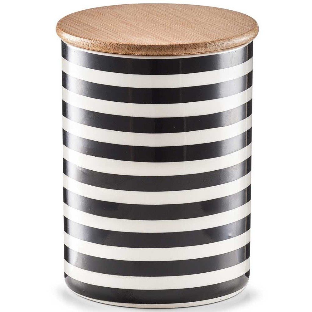 Ein keramischer Behälter für die Lagerung loser Nahrungsmittelprodukte. Es funktioniert auch gut für Plätzchen und Bonbons. Enges Спрятать ermöglicht es Ihnen, Frische und Aroma länger zu erhalten. Schützt den Inhalt vor Feuchtigkeit. Attraktiver, moderner Druck. Dekorativer Bezug aus natürlichem Bambus. Kapazität 900 ml.