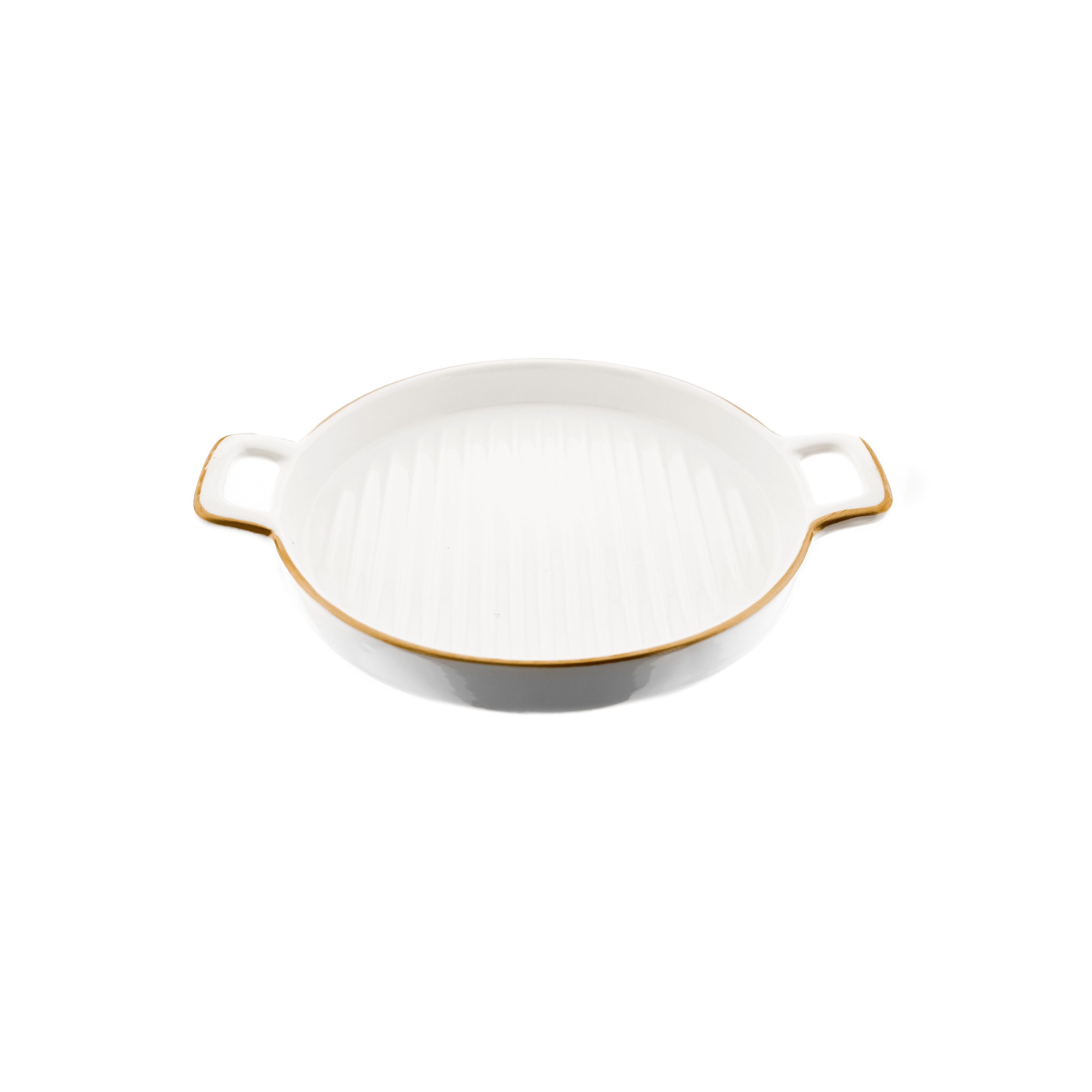 Dank der praktischen Griffe lässt sich der Teller bequem servieren und anrichten. Die fein strukturierte Oberfläche im Inneren sorgt für eine elegante Präsentation mit dezentem Design. Ideal für besondere Anlässe, festliche Tafeln oder als stilvolles Alltagsgeschirr.