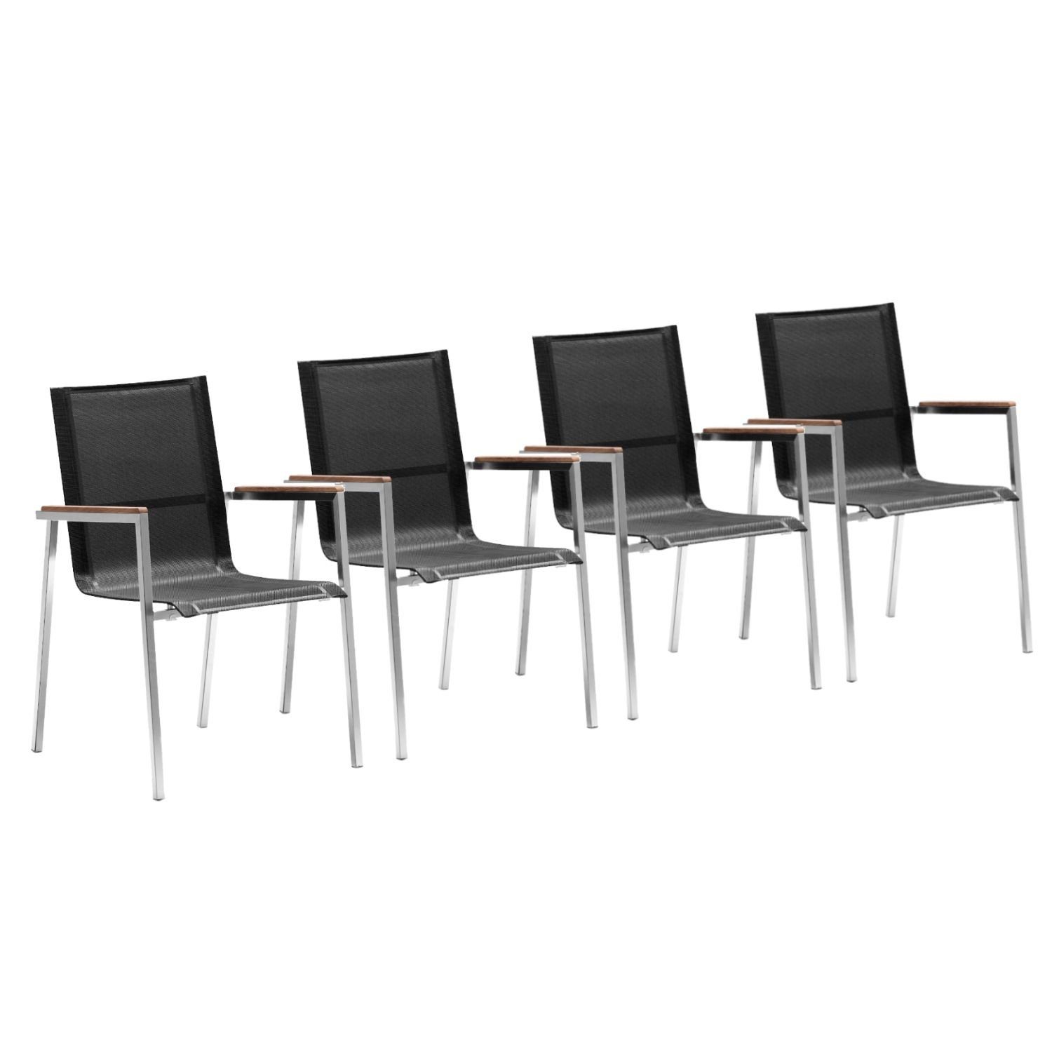 Zelsius 4x Edelstahl Gartenstuhl mit Teak Holz Armlehne, 55 x 56 x 88 cm, Schwarz