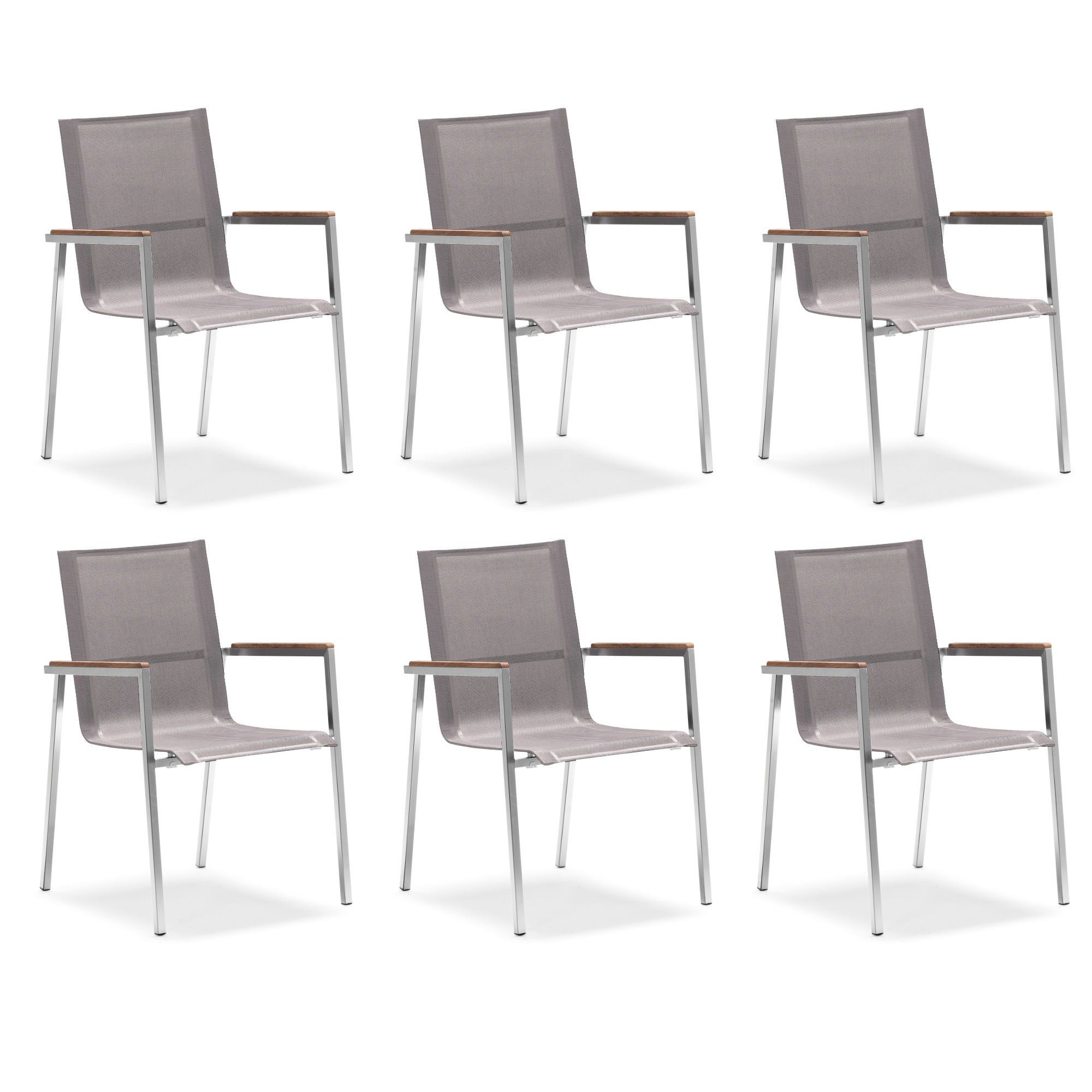 Zelsius 6x Edelstahl Gartenstuhl mit Teak Holz Armlehne, 55 x 56 x 88 cm, Taupe, wetterfest, stapeln
