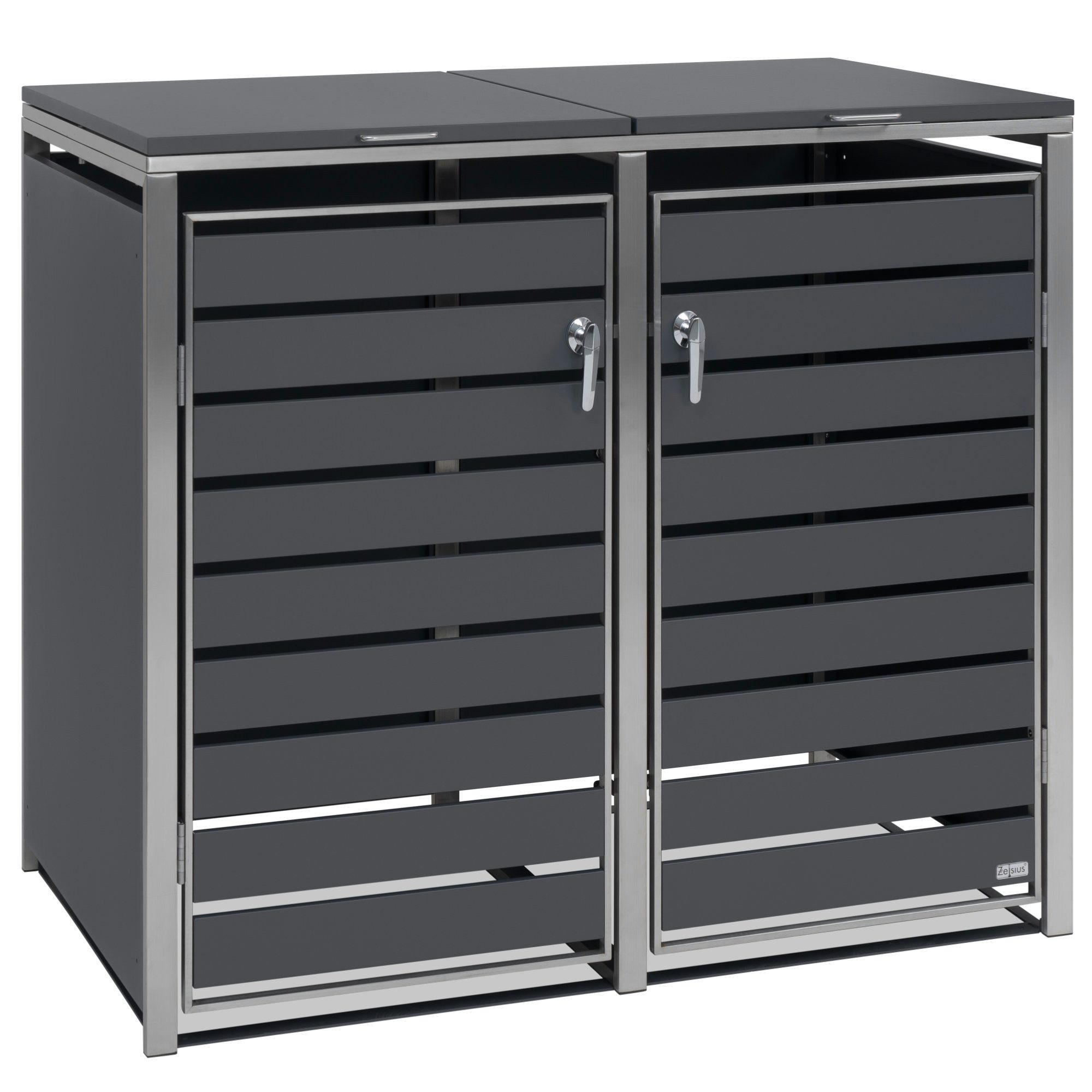 Zelsius Mülltonnenbox-Set für zwei Mülltonnen | Anthrazit RAL 7016 | Edelstahl | Mülleimerbox