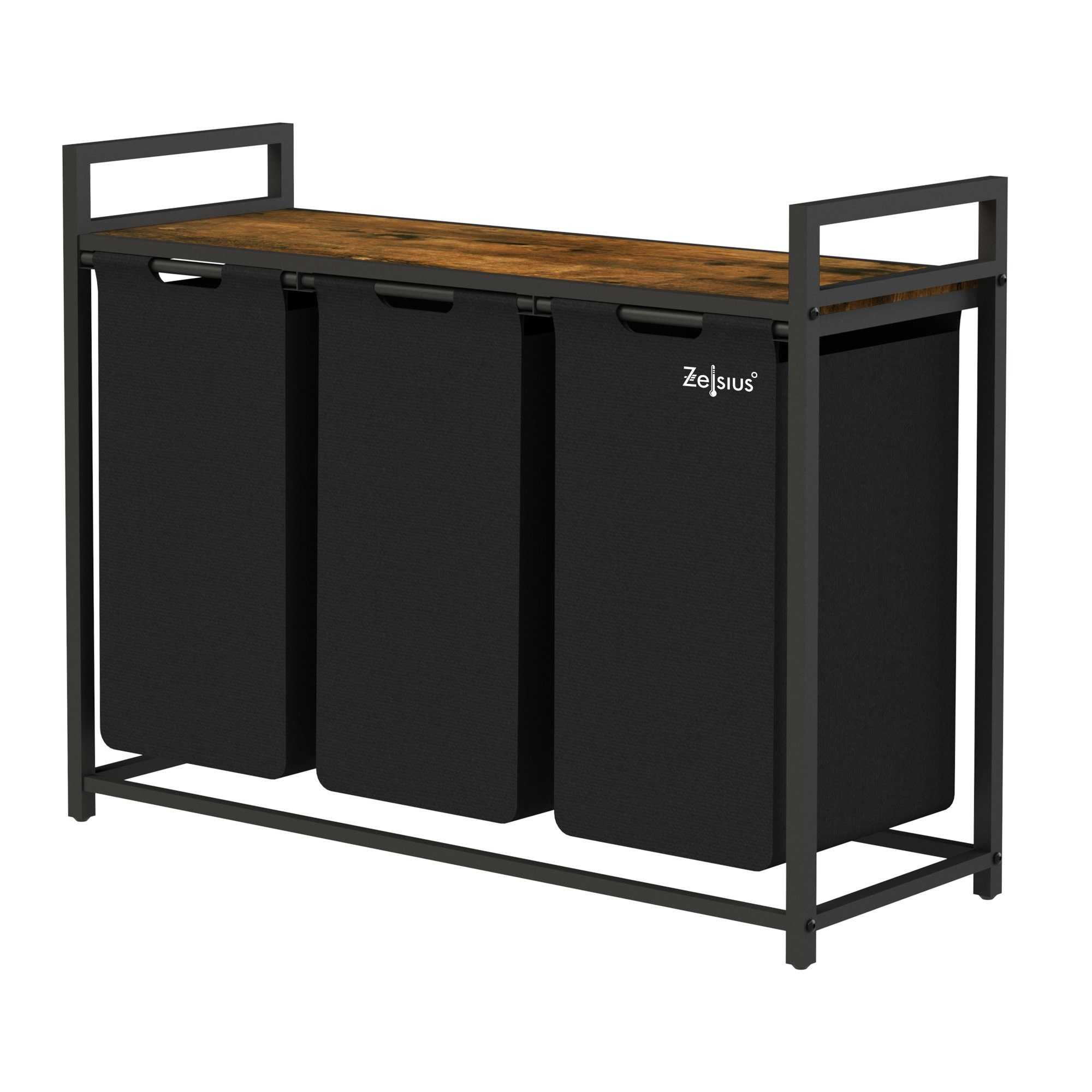 Der Zelsius Wäschesammler mit Ablage ist die ideale Ergänzung für Ihr Badezimmer, Ankleidezimmer oder Schlafzimmer. Dank der drei ausziehbaren Behälter können Sie schmutzige Kleidung, Bettwäsche und andere Textilien separat sortieren und aufbewahren.