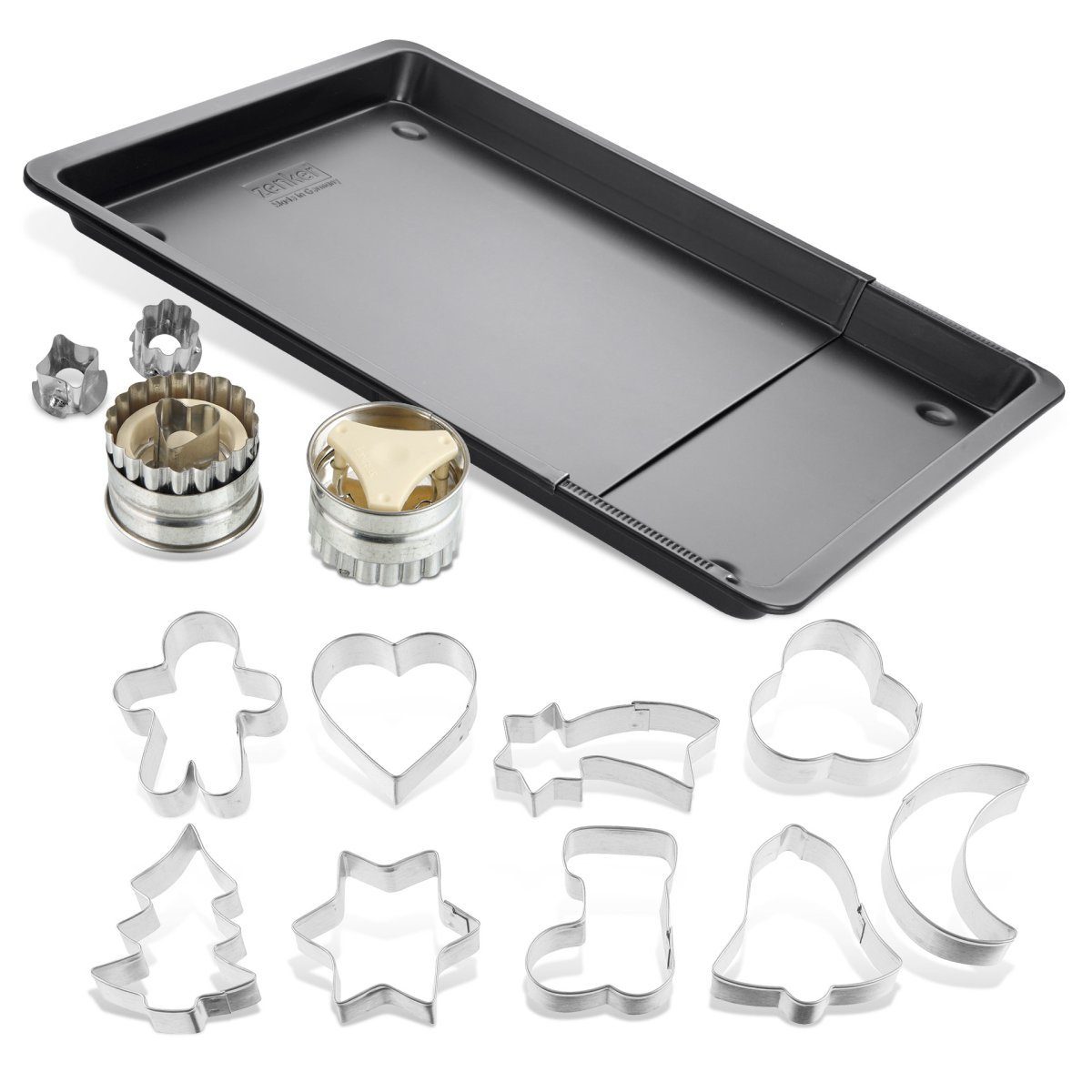 Zenker Süßer Weihnachtsmix für die ganze Familie Set (Menge: 1 x Herdbackblech, 1 x Linzer Ausstecher, 1 x 9 Ausstecher auf Drahtbügel)