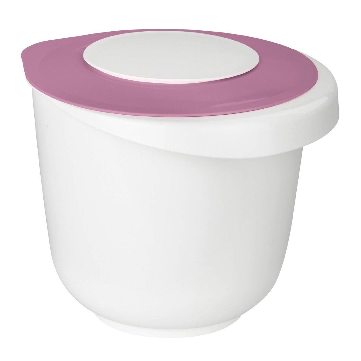 Die Rührschüssel mit Deckel mit einem Füllvermögen von 2 Litern und einem Durchmesser von circa 18,5 Zentimetern eignet sich ideal für das Verrühren von verschiedenen Teigen und für das Schlagen von Sahne oder Eischnee. Der praktische Deckel dient sowohl als Verschluss als auch als Spritzschutz: Einfach den inneren, weißen Ring abnehmen, Stab- oder Handmixer einsetzen und mit dem Rühren beginnen. Der schlagfeste Kunststoff der Schüssel ist besonders langlebig und robust. Die Rührschüssel mit komfortablem Schütt-Griff kann nach dem Gebrauch ganz einfach in die Spülmaschine gegeben werden, der Deckel lässt sich mühelos per Hand reinigen.