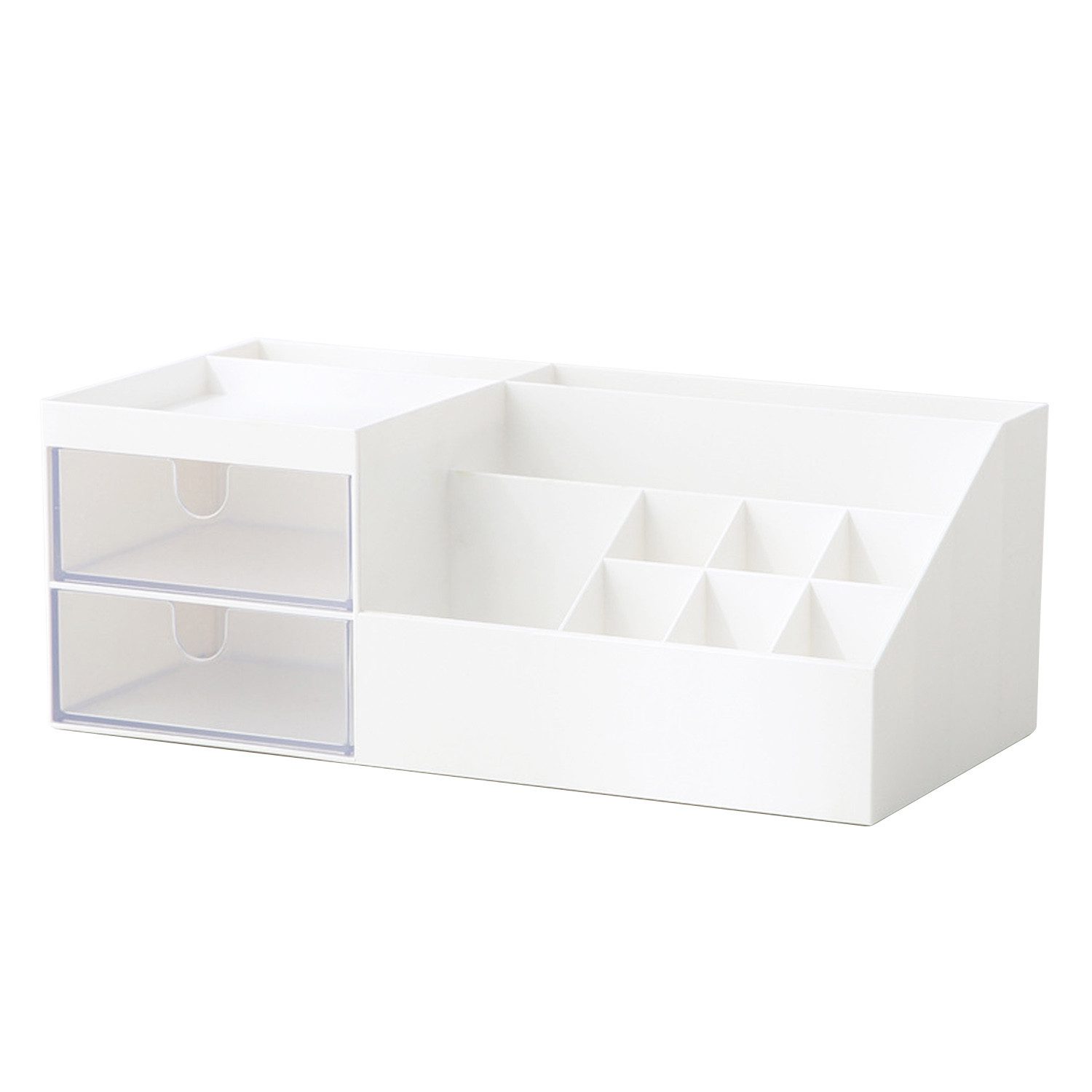 Der Make-up-Organizer verfügt über 10 Fächer und zwei kleine Schubladen.