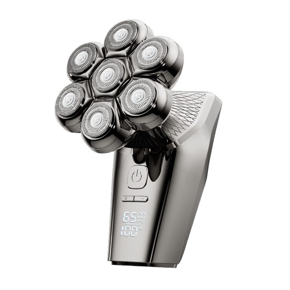 [Fortschrittliche7D-Schwimmkopf-Technologie] Der Kopfrasierer ist mit einem 7D Scherkopfausgestattet, der eine größere Rasierfläche und Stauraum der Haare hat, spartIhre Zeit. Der flexible 7D-Schwimmkopf passt sich den Konturen von Kopf undGesicht an und sorgt für eine gründliche Rasur. Je nach Размер desRasierbereichs kann der Scherkopf einzelne oder alle Klingen schweben lassen.Dies reduziert die Abnutzung des Kopfes, bietet Ihnen zugleich eine leisere undenergieeffizientere Rasur.