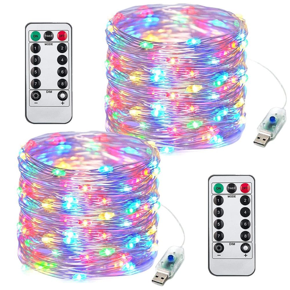 LED-Lichterkette 2 Stück USB Kupferdraht Lichterkette mit Fernbedienung 8 Modi,10M/20M