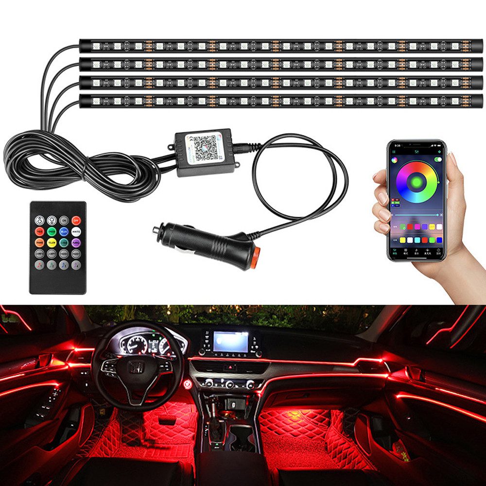 LED Stripe LED-Innenbeleuchtung Auto, 4 LED Streifen mit APP und Fernbedienung