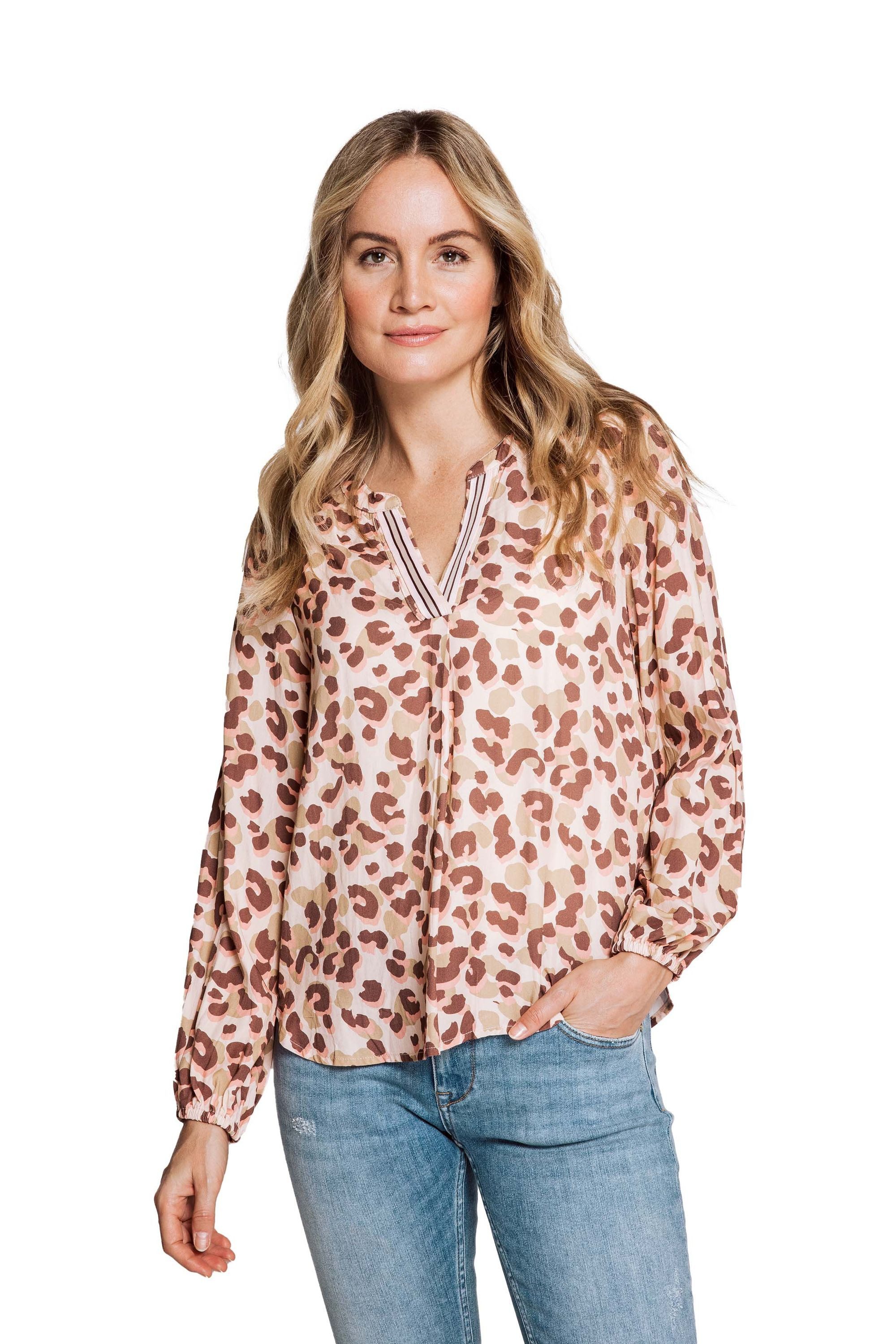 Entdecken Sie die verführerische Eleganz der Zhrill Damenbluse "QUINTA" in zartem Rosé mit einem trendigen Leo-Print. Diese Bluse besticht durch ihren Regular Fit und den stilvollen V-Ausschnitt, der Ihr Dekolleté perfekt in Szene setzt. Die langen Ärmel mit Gummizug verleihen dem Oberteil eine verspielte Note und ermöglichen eine individuelle Anpassung. Hergestellt aus hochwertiger 100% Viskose bietet die Bluse einen angenehmen Tragekomfort und eine fließende Passform. Ein vielseitiges Kleidungsstück, das sich sowohl für formelle Anlässe als auch für den Alltag eignet. Mit dieser Bluse setzen Sie ein modisches Statement und verleihen Ihrem Outfit eine feminine Note.