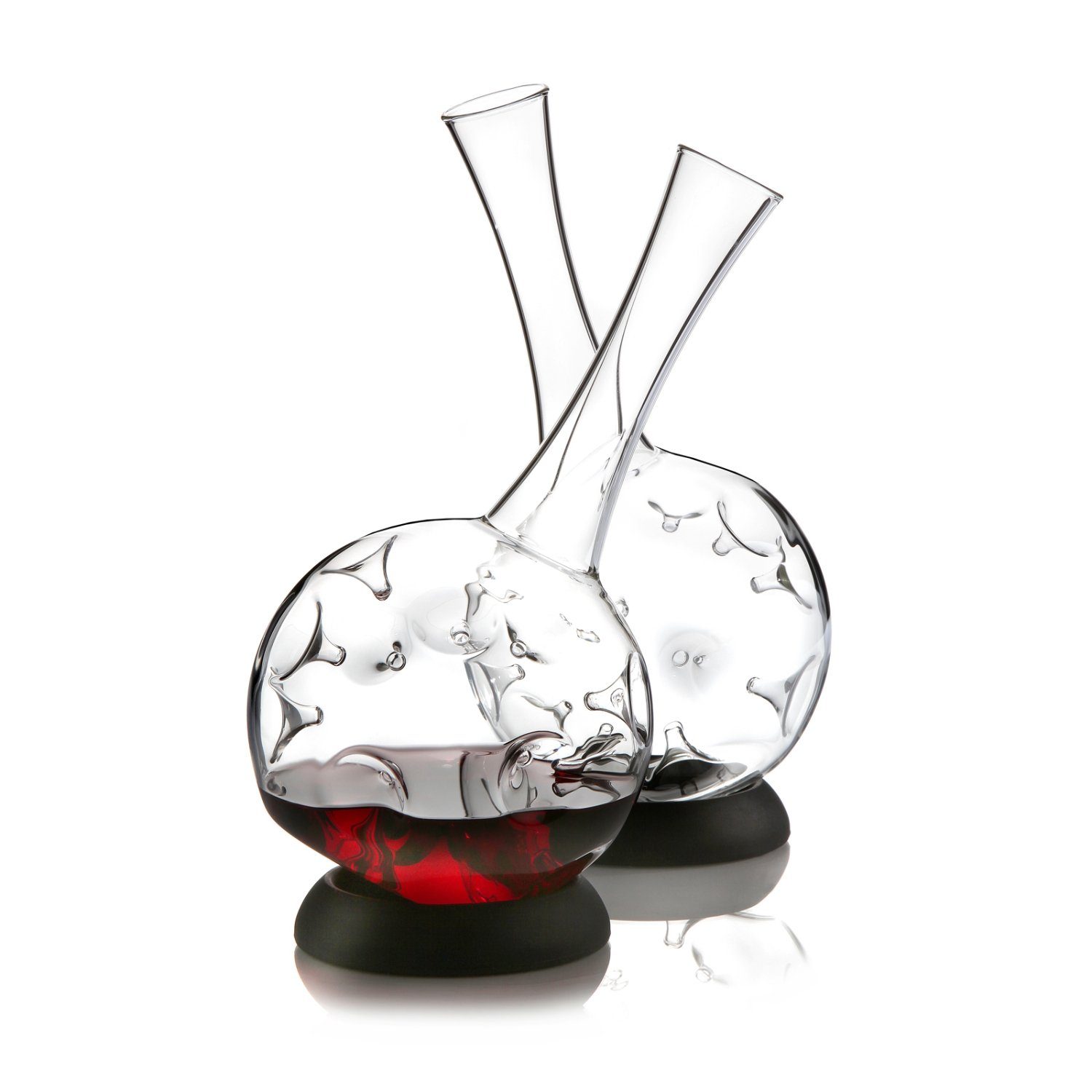 Mit seinen beeindruckenden Maßen – einem Fassungsvermögen von 2,3 Litern, einem Durchmesser von 17 cm und einer Gesamthöhe von 35 cm – stellt der Zieher "Eddy" Weindekanter/Karaffe ein herausragendes Set dar, bestehend aus einem Dekanter und einem Basisring. Dieses Set ist nicht nur ein unverzichtbares Werkzeug für die Entfaltung des vollen Potenzials Ihres Weins, sondern auch ein optischer Hingucker, der in jeder Umgebung für Gesprächsstoff sorgt.