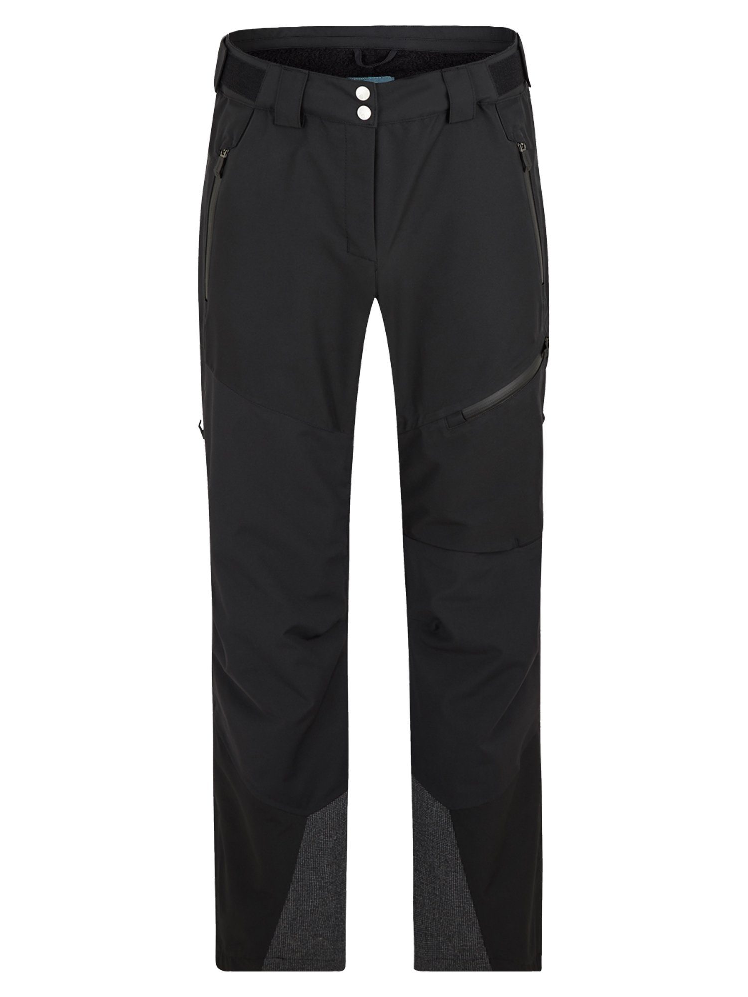 Die hochfunktionelle, unwattierte ZIENER Damen Skihose TRESA LADY mit weitenregulierbarem Bund punktet mit recycelten Materialien. Die atmungsaktive, wasser- und winddichte sowie nachhaltige SYMPATEX® Membran (Wassersäule 20.000mm/Atmungsaktivität 15.000g/m²/24h) und der PONTETORTO Wool Layer mit natürlicher Wolle sorgen für ein angenehmes, trockenes Klima und ein perfektes Wärmegleichgewicht. Das Besondere: die Jacke und die Skihose der Freeride Kollektion können mit Hilfe eines Reißverschlusses zu einem Einteiler verbunden werden. Dies verhindert das Verrutschen der Jacke und das Eindringen von Schnee und Kälte. In den beiden Eingriffstaschen und in der Seitentasche am Bein lassen sich die wichtigsten Dinge dank Reißverschluss sicher verstauen. Die ergonomisch angepasste Schnittführung am Knie sorgt für maximale Bewegungsfreiheit. Die Hose wird ergänzt durch einen verstärkten Kantenschutz sowie einem Schneefang. Belüftungsmöglichkeiten beugen Überhitzung vor und wasserdichte Reißverschlüsse verhindern das Eindringen von Nässe. Die wichtigsten Nähte sind verschweißt. Das Produkt enthält recyceltes Material – für einen ressourcenschonenden Umgang mit der Umwelt.