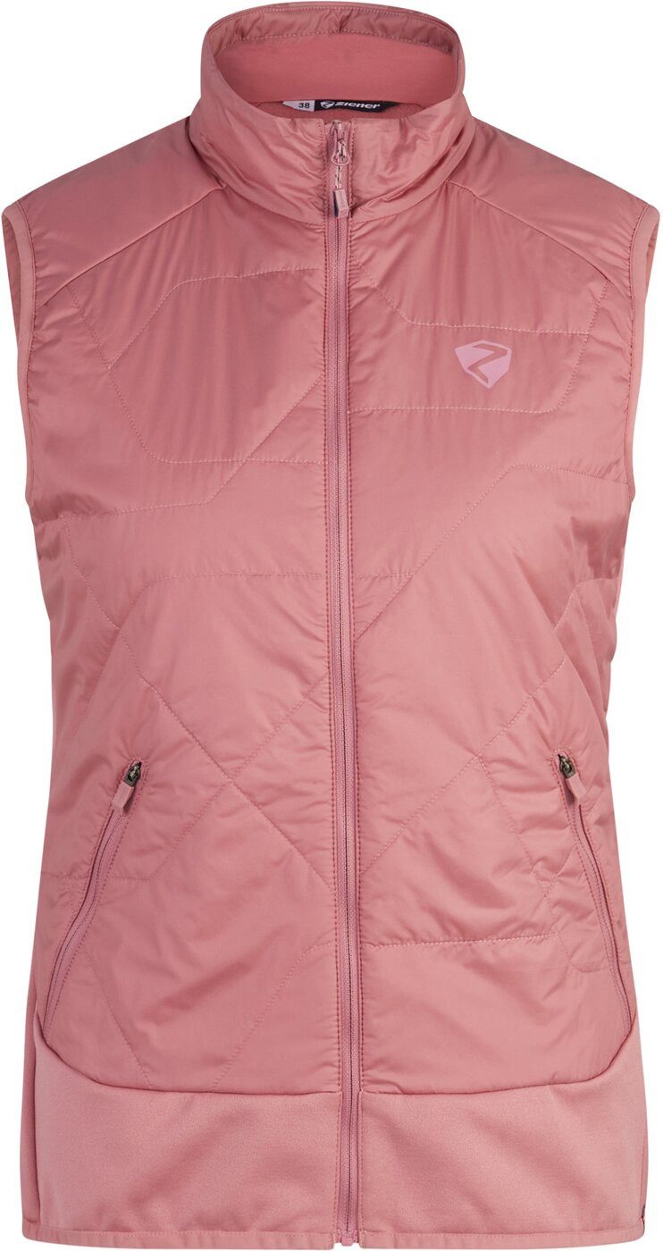Die funktionelle, körpernah geschnittene ZIENER Damen Hybrid Weste NARTA LADY mit dem ZIENER WEATHERSHIELD® sorgt dank wasser- und windabweisender Materialien für hohe Funktionalität und Schutz ? egal, ob es leicht regnet, windet oder schneit. Sie ist mit einem wattierten oberen Frontbereich aus PrimaLoft® Insulation (40g/m² Wattierung) versehen. Die Wattierung besteht aus recyceltem Material ? für einen ressourcenschonenden Umgang. Das Stretchmaterial am Rücken und im unteren vorderen Bereich sorgt für maximale Bewegungsfreiheit. Dank der umweltfreundlichen Imprägnierung ist die Weste PFC-frei. Впередe technische Details machen die Weste zu einem treuen Begleiter bei sportlichen Abenteuern: Der Stehkragen schirmt den Hals vor Wind und Wetter ab. Zwei seitliche Reißverschlusstaschen garantieren einen sicheren Stauraum für kleine Gegenstände. Ein elastischer Saumabschluss sorgt für den perfekten Sitz und reflektierende Designelemente erhöhen die Sichtbarkeit. Die Weste ist optimal für bewegungsintensive Sportarten, in denen maximale Atmungsaktivität benötigt wird.