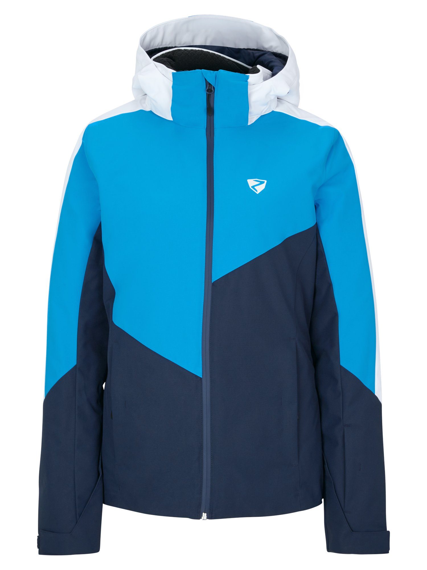 Für alle sportlichen Ladies: Die funktionelle, wattierte ZIENER Damen Skijacke PELDA Lady überzeugt mit zahlreichen Detaillösungen und dem Einsatz von hochwertigen Materialien. Die atmungsaktive, wasser- und winddichte ZIENER AQUASHIELD® Membran (Wassersäule 10.000mm/Atmungsaktivität 10.000g/m²/24h) sorgt für ein warmes und trockenes Klima. Die 100g/m² Wattierung und ein wärmendes Futter am Rücken halten das Wärmegleichgewicht und garantieren höchsten Tragekomfort. Eine abnehmbare, verstellbare Funktionskapuze, elastische Ärmelinnenbündchen sowie eine Skipasstasche zählen zur Basisausstattung. Die coole Farbkombination machen die Jacke zum modischen Highlight auf der Piste.