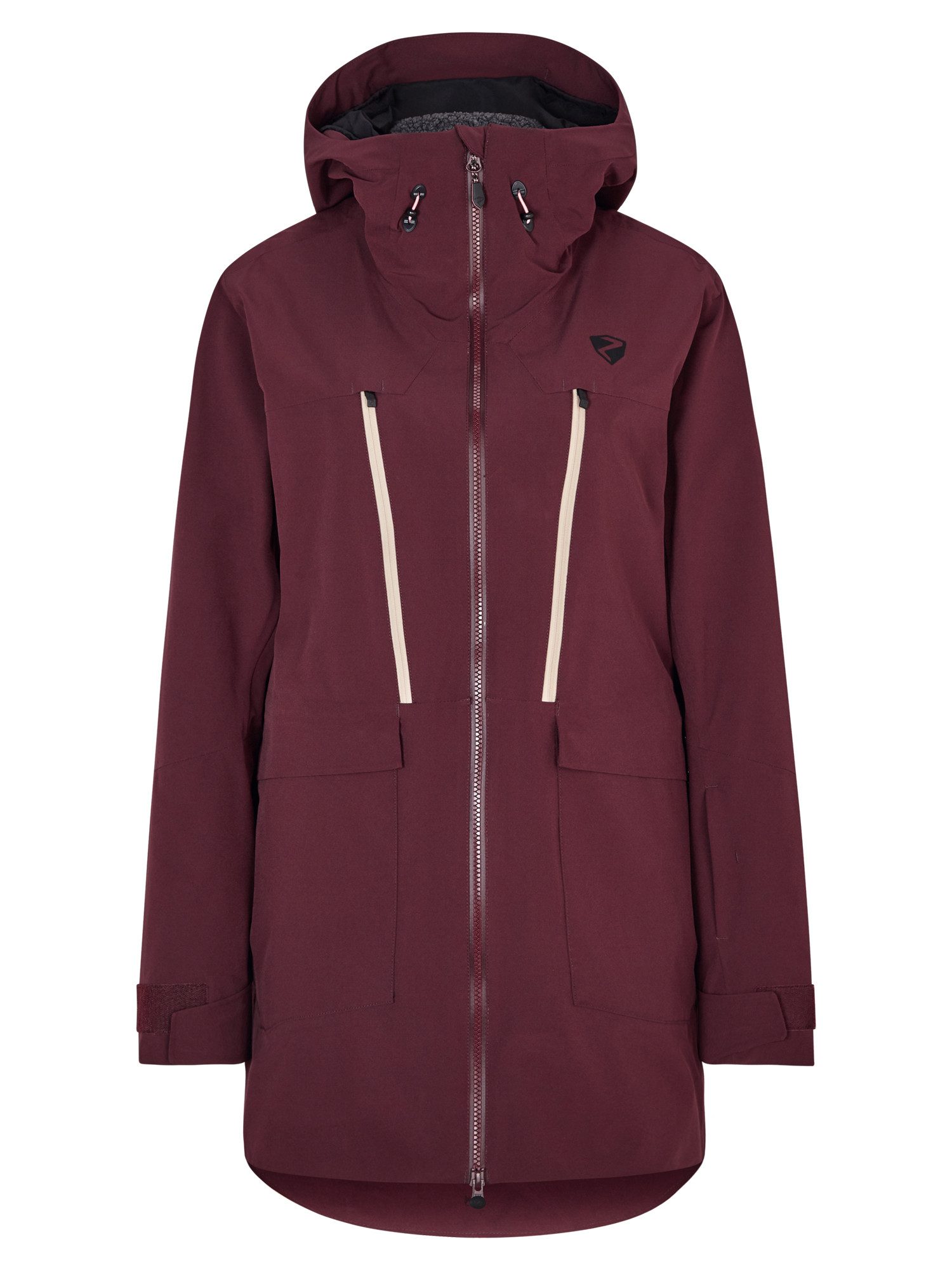 Die hochfunktionelle, unwattierte ZIENER Damen Freeride Jacke THALA LADY punktet mit recycelten Materialien. Die atmungsaktive, wasser- und winddichte ZIENER AQUASHIELD® Membran (Wassersäule 10.000mm/Atmungsaktivität 10.000g/m²/24h) und der PONTETORTO Wool Layer mit natürlicher Wolle sorgen für ein angenehmes, trockenes Klima und ein perfektes Wärmegleichgewicht. Technische Details wie die verstellbare Funktionskapuze und elastische Ärmelinnenbündchen sorgen für einen perfekten Funktionskomfort. Ein extra hoher Kragen hält den Hals an kalten Tagen schön warm. Wasserdichte Reißverschlüsse und ein abnehmbarer Schneefang gehören zur Basisausstattung. In den beiden aufgesetzten Taschen und den Brusttaschen mit Reißverschluss lassen sich die wichtigsten Dinge sicher verstauen. Die seitliche Skipasstasche, Taschen für Ski- und Sonnenbrillen sowie eine Smartphone Tasche machen die Jacke zu einem unverzichtbaren Begleiter auf der Piste. Und sollte es doch mal zu warm werden, sorgen die Belüftungsmöglichkeiten unter den Armen für die nötige Ventilation. Die wichtigsten Nähte sind verschweißt. Das Produkt enthält recyceltes Material – für einen ressourcenschonenden Umgang mit der Umwelt.