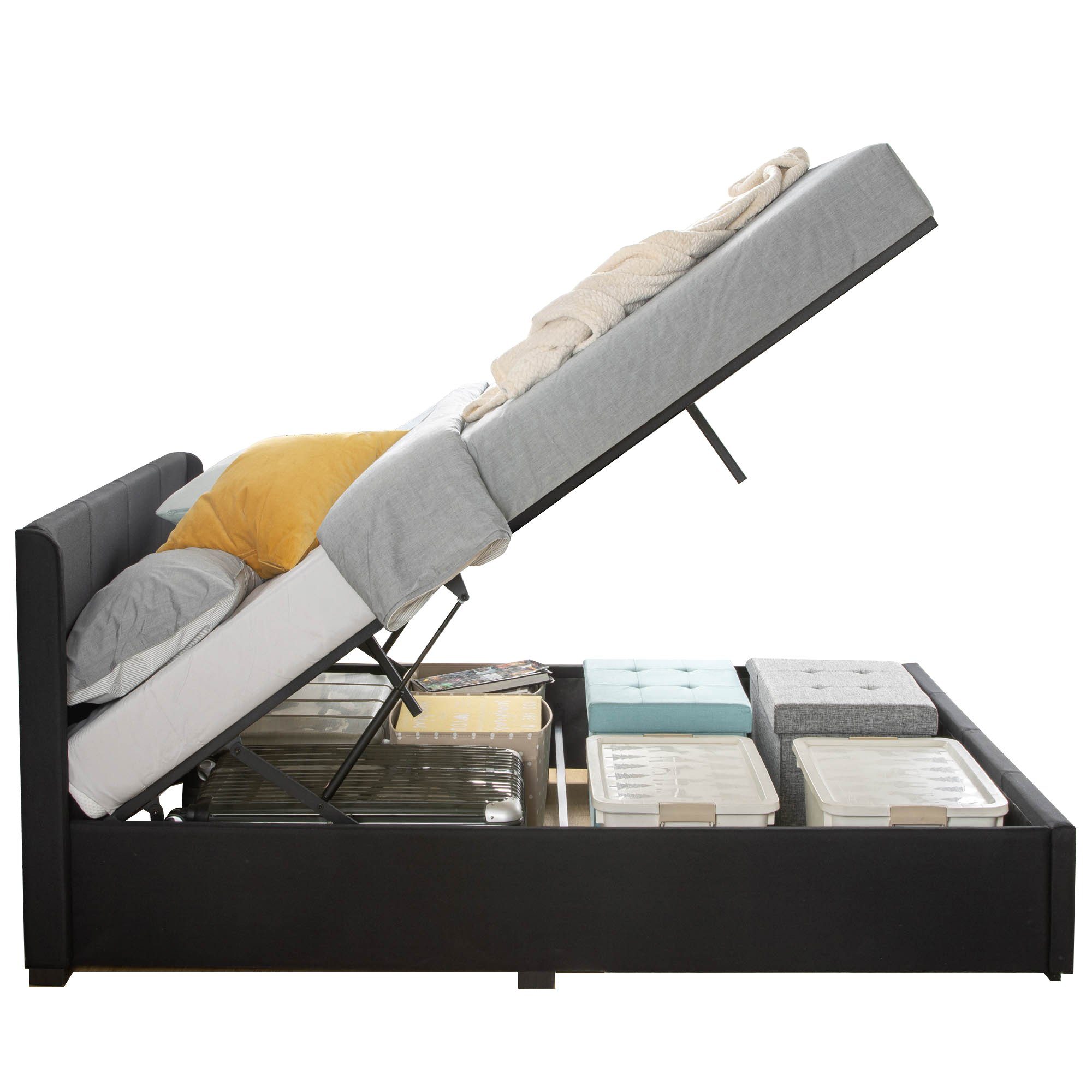 Details Bettgestell | eingebauter Lattenrost Stauraum Kopfteil |