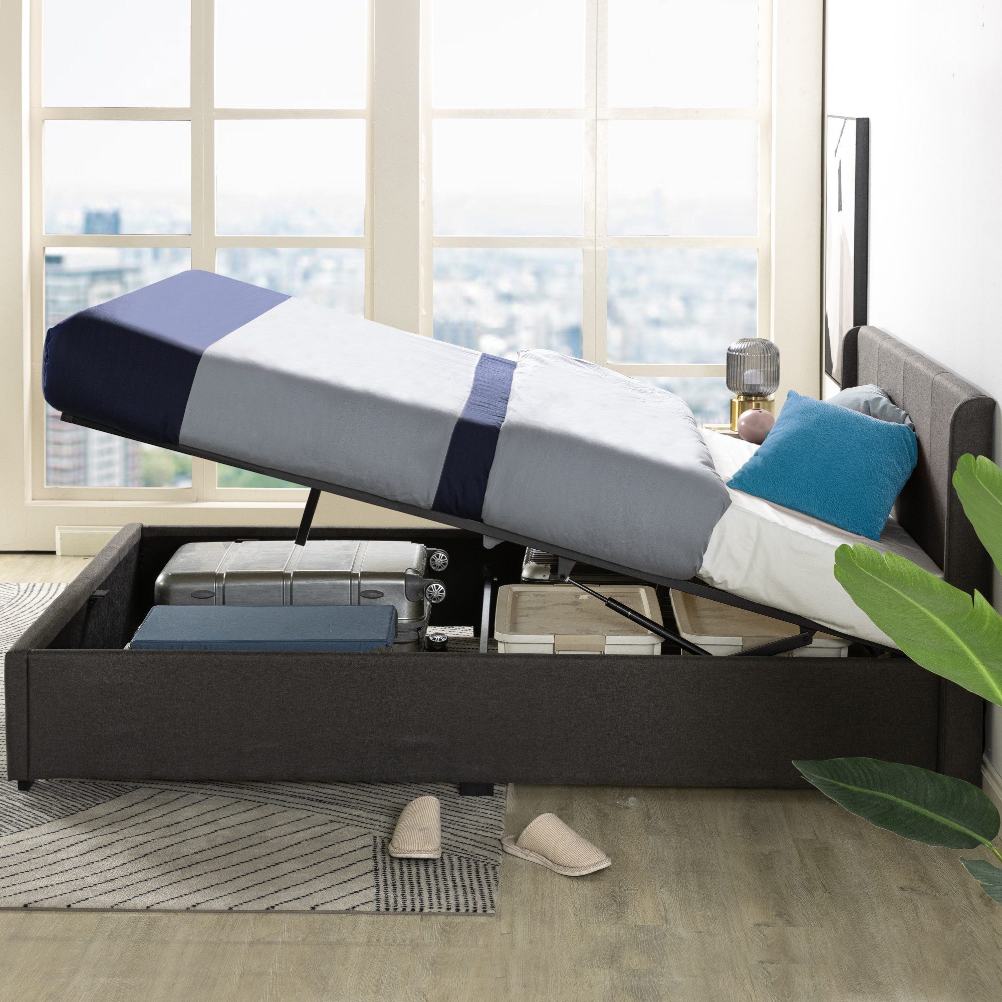 Details Bettgestell | eingebauter Lattenrost Stauraum Kopfteil |