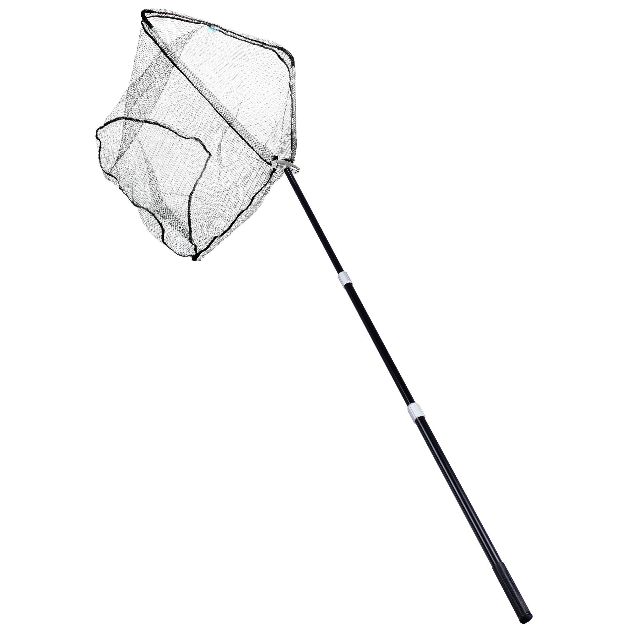 Trotz seiner Размер ist der Kescher dank seines Aluminiumgestänges leicht und damit auch für Kinder geeignet. Die Handhabung ist einfach und unkompliziert: Zwei Knöpfe am Kopf ermöglichen ein schnelles Auf- und Einklappen des Bügels, und die Stange kann einfach durch einen Drehmechanismus ausgezogen werden.