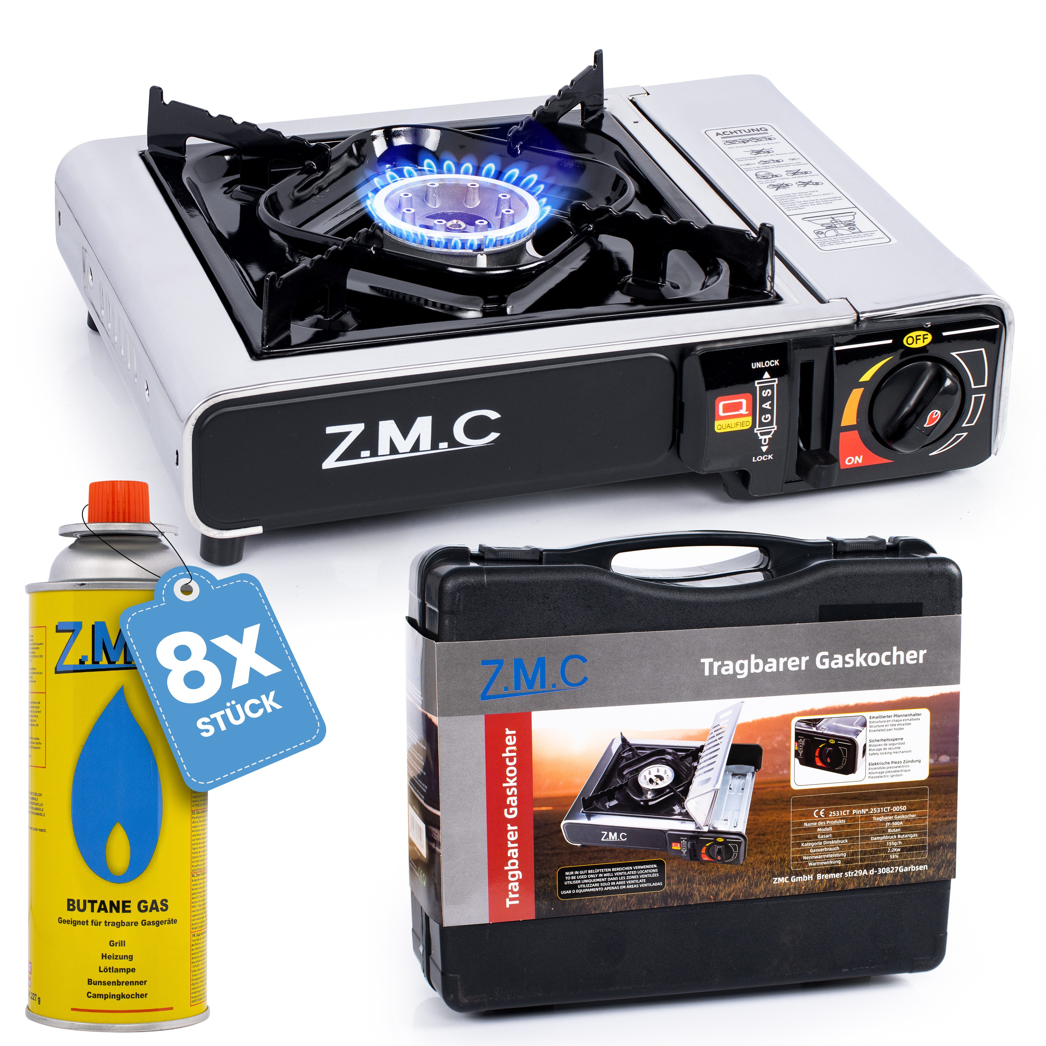 inklusive 8x Butangas-Kartuschen MSF-1a 227g