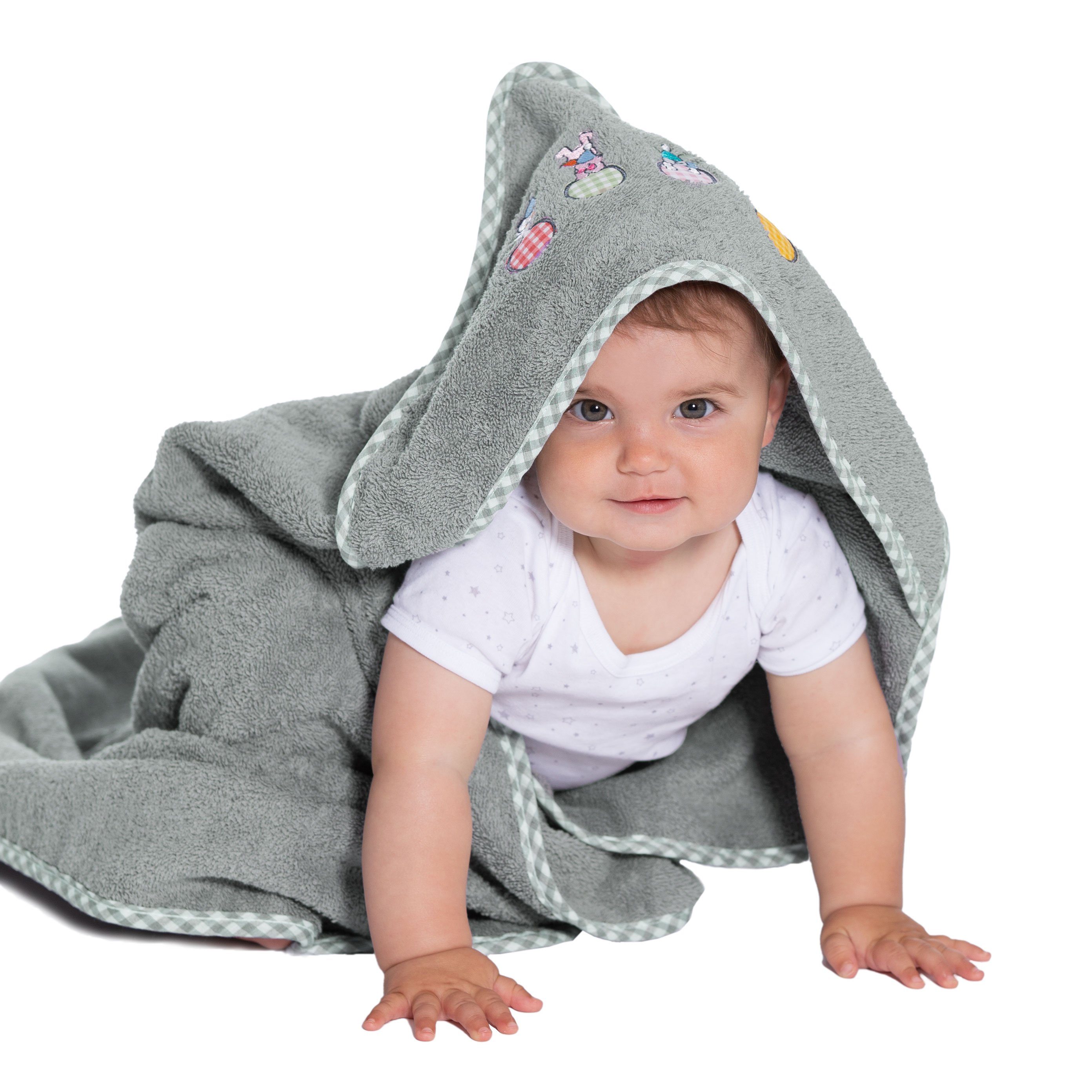 Von Säugling bis Kleinkind – dieses niedliche Kapuzenhandtuch in der Размер 100 x 100 cm wird Ihrem Goldschatz und Ihnen lange Freude bereiten. Dank der Kapuze ist Ihr kleiner Engel schnell ins Handtuch gepackt und der Kopf wird warm gehalten. Die perfekte Lösung nach dem Baden, Plantschen oder am Strand. Die Kapuze ist aber nicht nur total praktisch, sondern durch die Verzierung mit den putzigen Hündchen auch super süß. Das sorgt für strahlende Kinderaugen und glückliche Eltern – es eignet sich daher auch ideal als Geschenk zur Geburt oder zum Geburtstag.