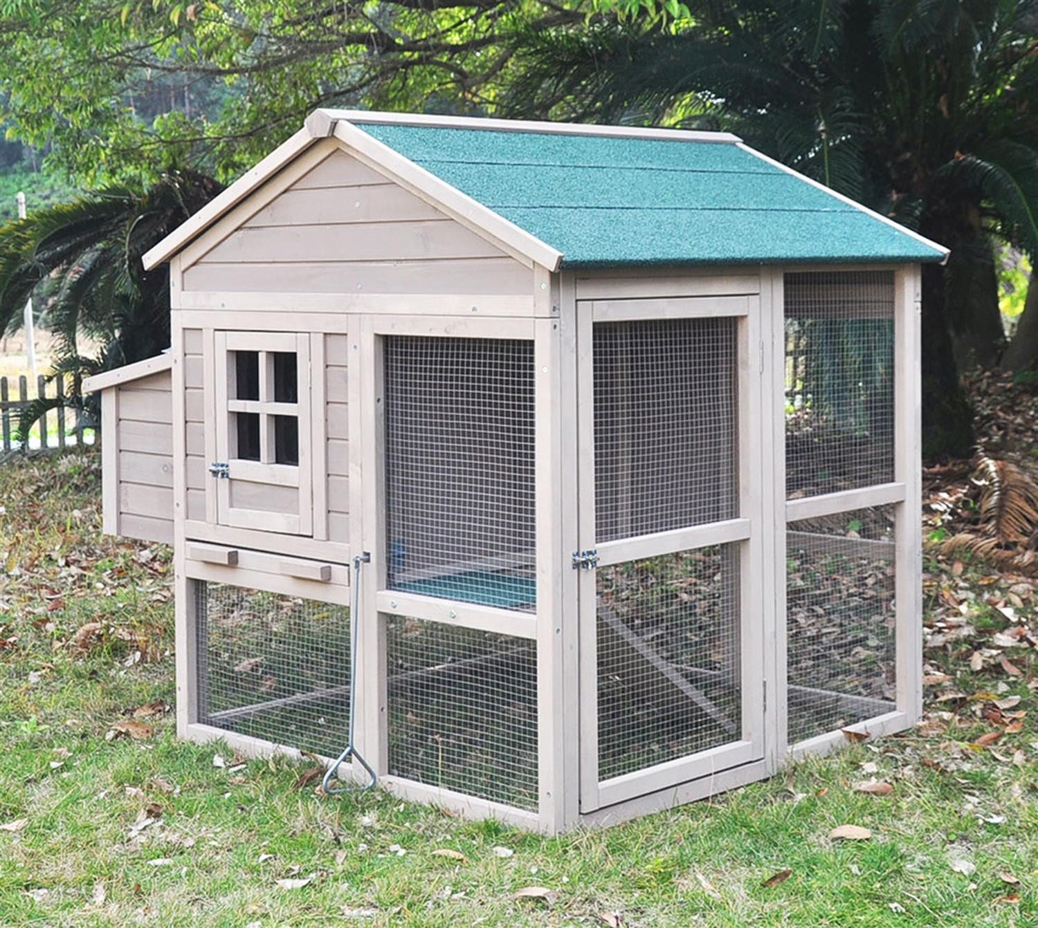 - Der komplette Stall ist durch die spezielle Behandlung des Holzes und dem wetterfestem Bitumendach gegen Regen geschützt. Hergestellt aus tierfreundlich behandeltem Holz für jahrelange Haltbarkeit im Outdoor, fuchssicher.
