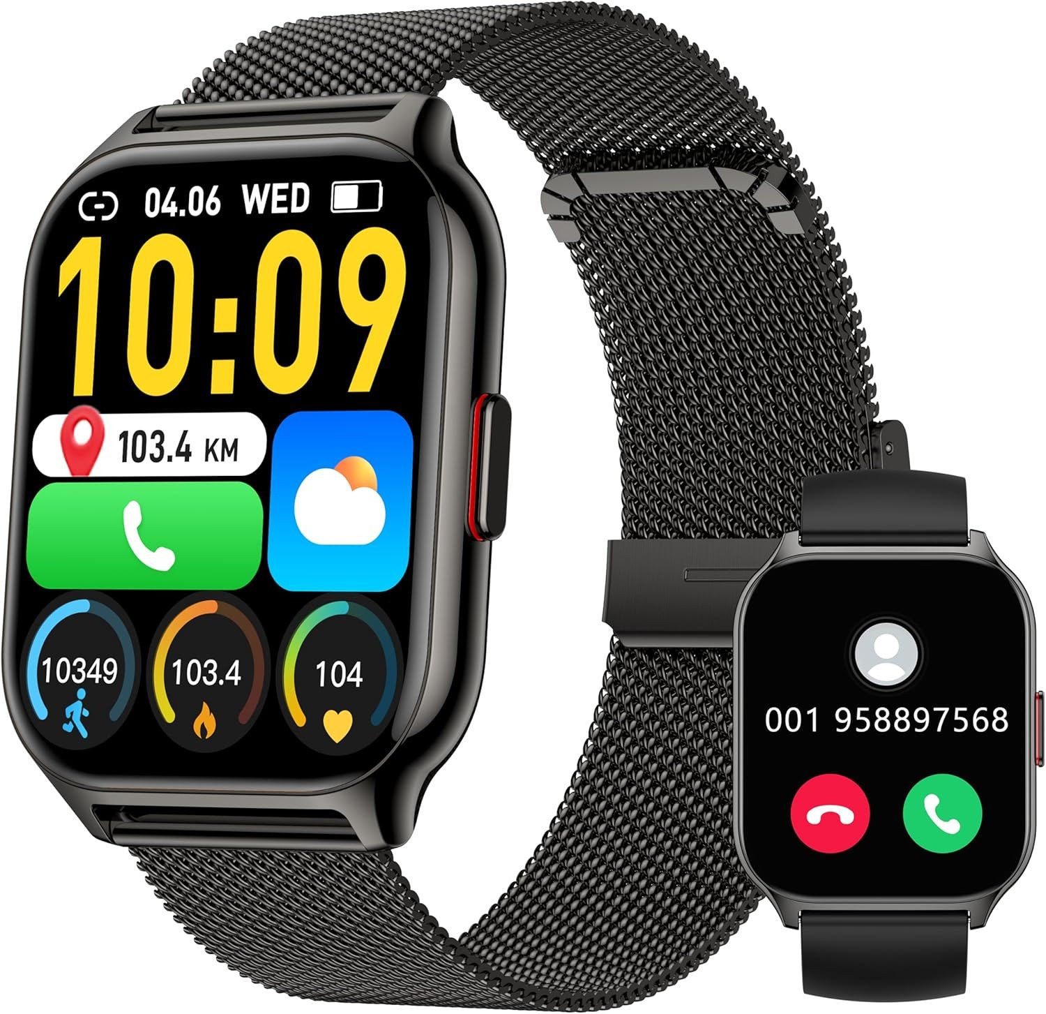 Smartwatch für Damen und Herren, Fitnesstracker 2 Zoll Touch-Farbdisplay mit Telefonfunktion, Armbanduhr Blutdruckmessung Herzfrequenz Schlafmonitor SpO2, Sportuhr IPx7 Wasserdicht Schrittzähler