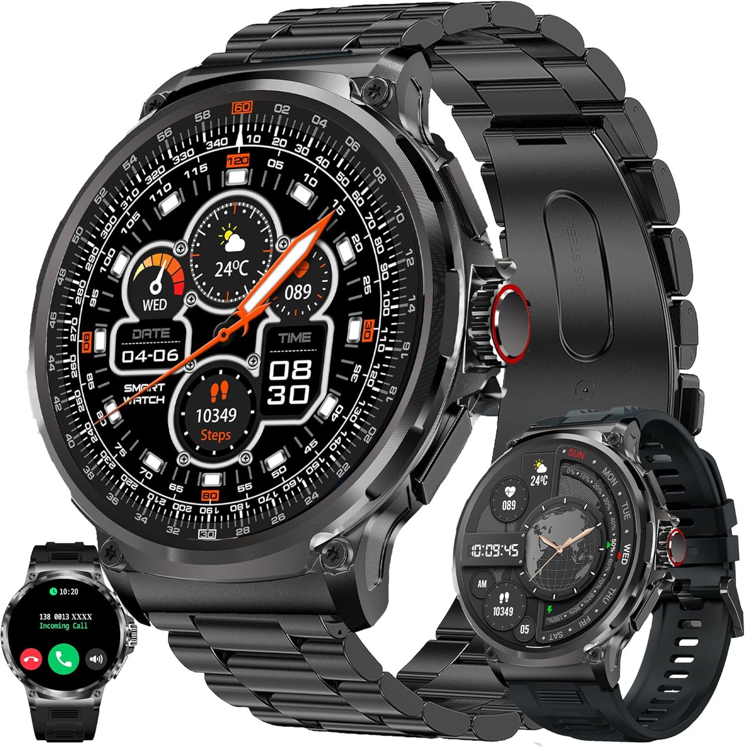 Zusatzfunktionen | Smartwatch mit 1.85 Zoll AMOLED Display Smartwatch mit Bluetooth Telefonie Smartwatch mit Musikfunktion Smartwatch mit 100 Sportmodi Smartwatch mit 5ATM Wasserschutz Smartwatch mit Herzfrequenzmessung Smartwatch mit Schlafanalyse Smartwatch mit Blutsauerstoffmessung Smartwatch mit Zyklus Erinnerung Smartwatch mit Fitnessfunktionen Smartwatch mit GPS Routenanzeige Smartwatch mit Kamera Fernsteuerung Smartwatch mit 710 mAh Akku Smartwatch für Damen und Herren |