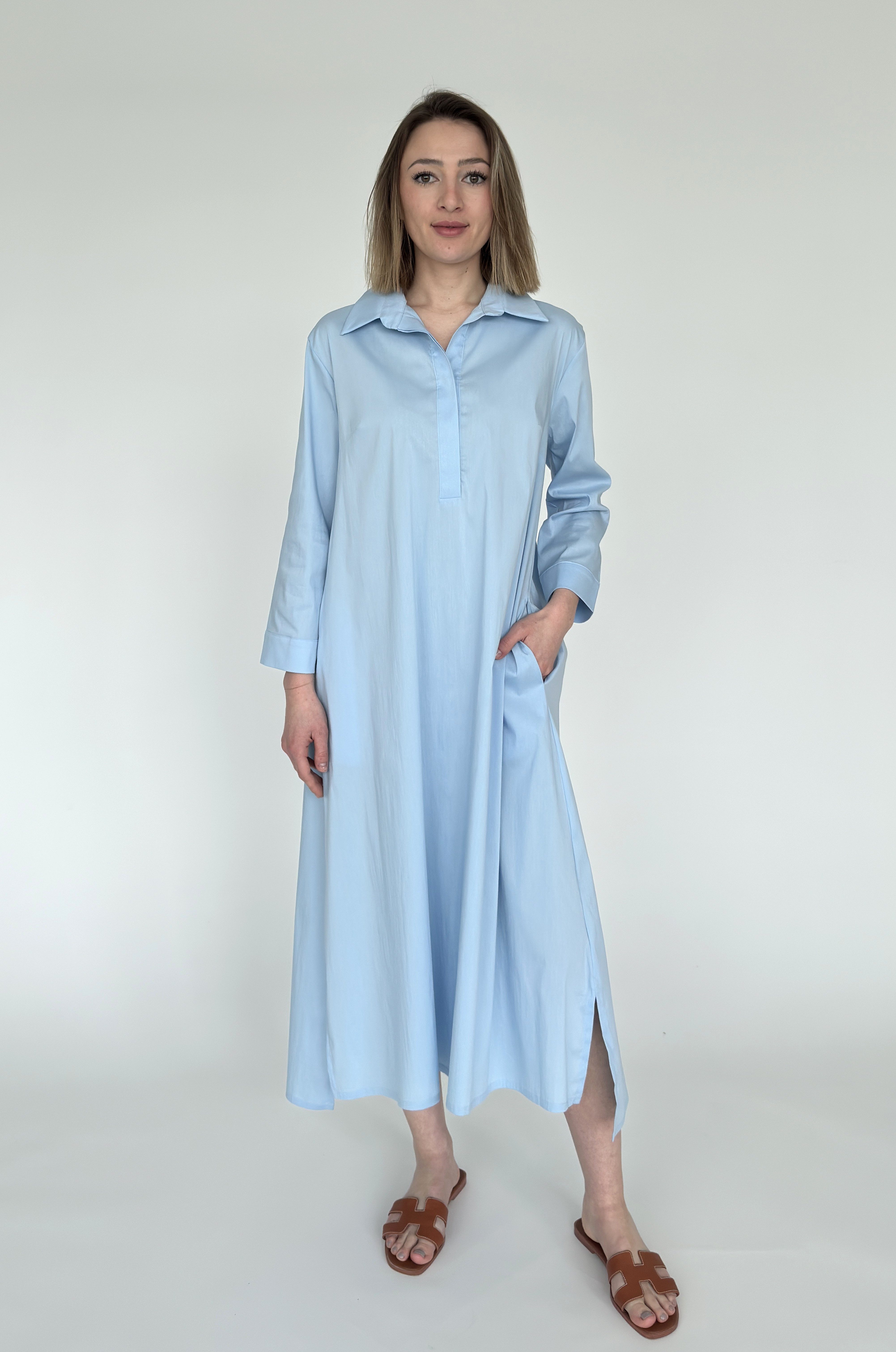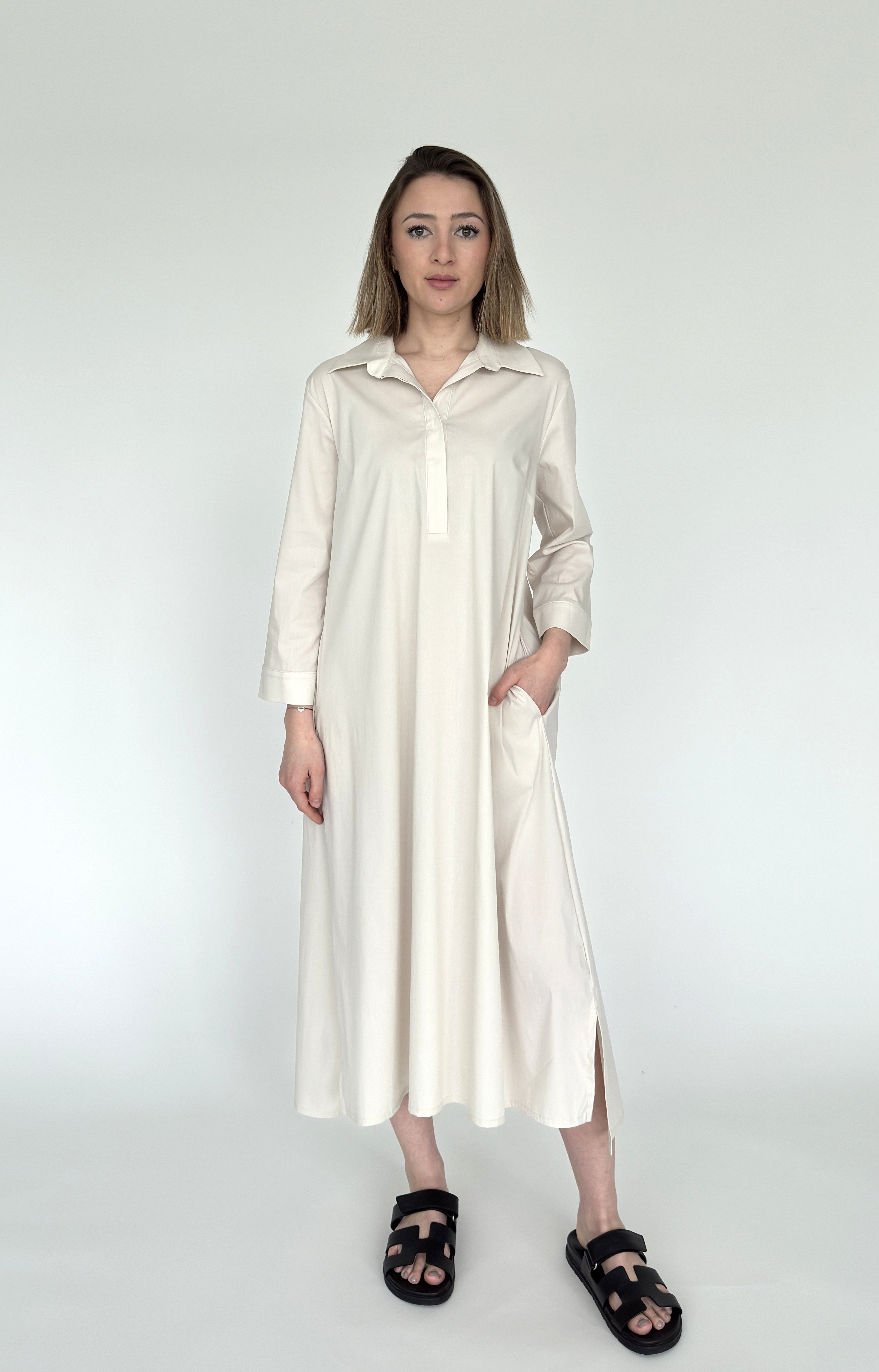 Besondere Merkmale | langes Hemdblusenkleid aus feiner Baumwolle mit Stretch |