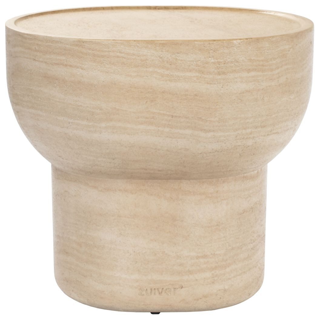 Hergestellt aus Beton und bemalt für einen Travertin-Look ist der Beistelltisch in zwei Größen und verschiedenen Formen erhältlich.