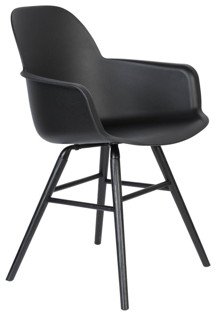 Albert Kuip All Black ist in verschiedenen Ausführungen erhältlich, Stühle mit und ohne Armlehnen, ein Barhocker, und ein Tresenhocker.