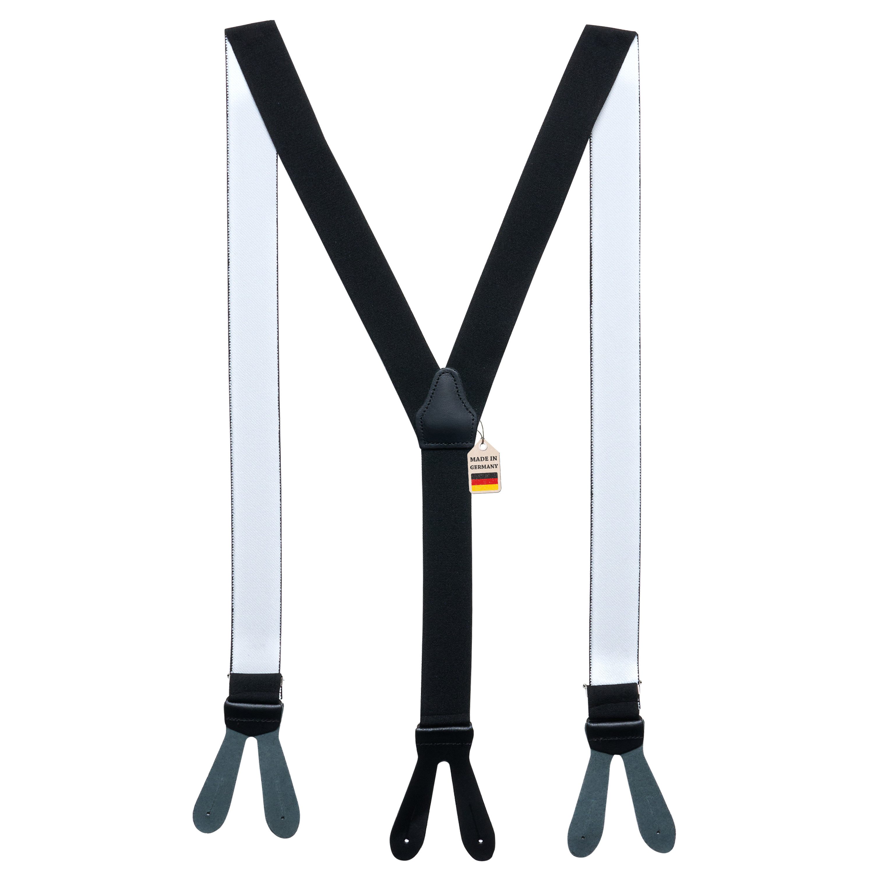 Diese 3,5 cm breiten Hosenträger in klassischer X-Form verbinden elegantes Design und Komfort. Der Knopfverschluss mit Lederriemen sorgt für sicheren Halt, ohne Clips zu benötigen. Der hochwertige Leder-Patch im Rücken betont die Qualität dieser in Deutschland gefertigten Hosenträger aus flexiblem Polyester-Elastan. Für Damen und Herren, individuell verstellbar – perfekt für stilvolle Auftritte bei jeder Gelegenheit. Hosenträger - X-Form Hosenträger - Hosenträger Knopfverschluss - Hosenträger zum Knöpfen - Hosenträger Herren - Hosenträger Damen - Hosenträger Unisex - Hosenträger flexibel - Hosenträger größenverstellbar - Hosenträger 3,5 cm breit - Made in Germany Hosenträger - Hosenträger Polyester Elastan - Hosenträger mit Leder Patch - Deutsche Qualität Hosenträger - Hosenträger ohne Clips - Elegante Hosenträger