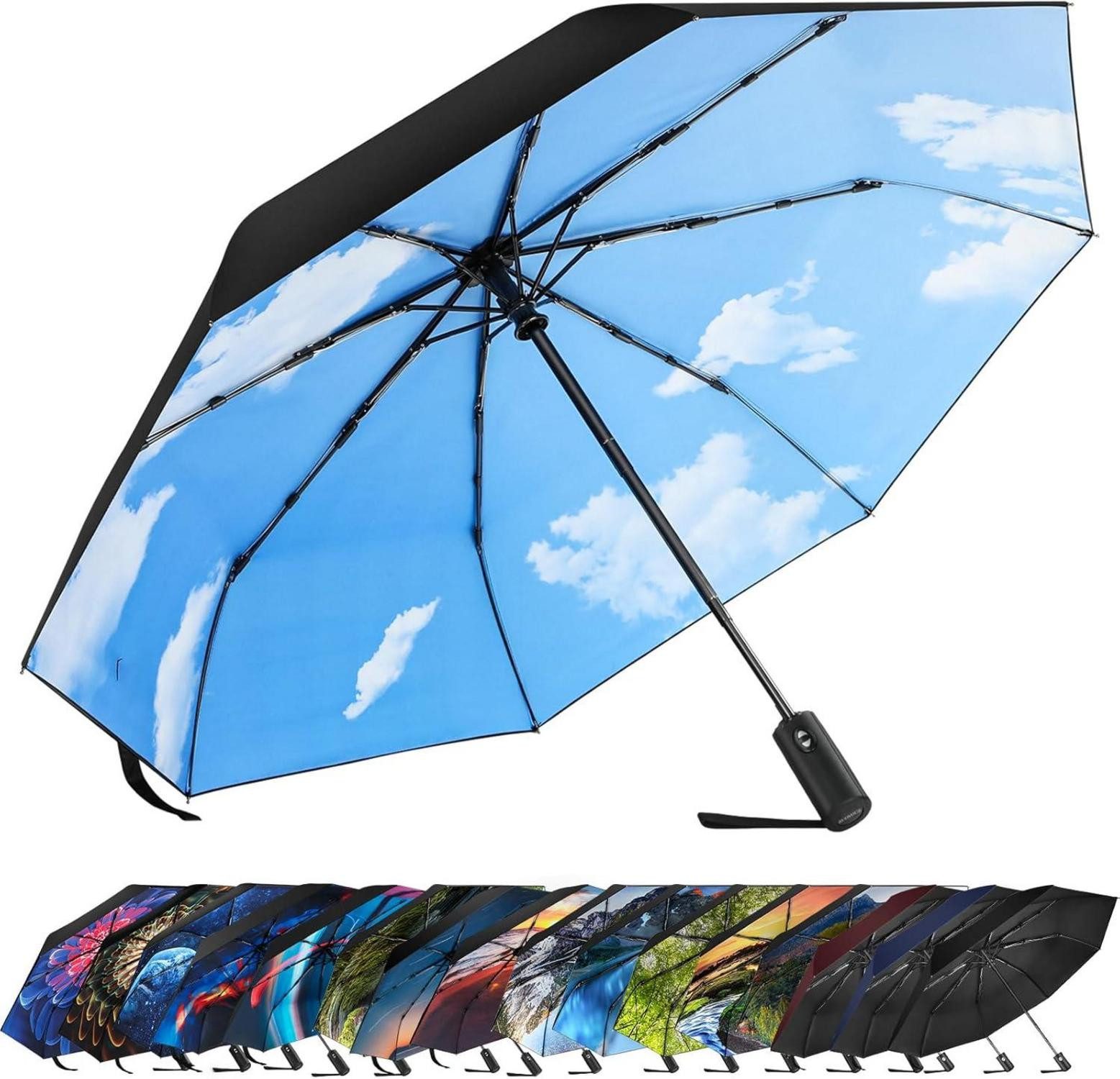 Die Regenschirme sind leicht, kompakt und tragbar – ideal für unterwegs. Das automatische Öffnen und Спрятать ermöglicht einen schnellen Zugriff auf den Regenschirm, wenn Sie ihn benötigen. Mit nur einem Knopfdruck können Sie den Regenschirm schnell öffnen oder schließen. Zusammengeklappt ist er nur 28 cm (11 Zoll) lang und wiegt nur 0,38 kg (0,84 lbs), was ihn zum idealen Reisebegleiter macht.
