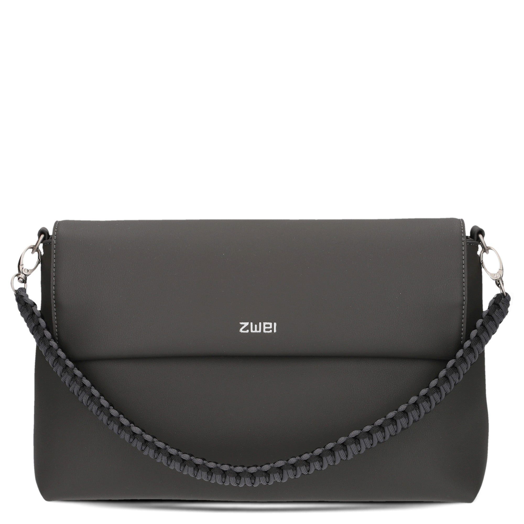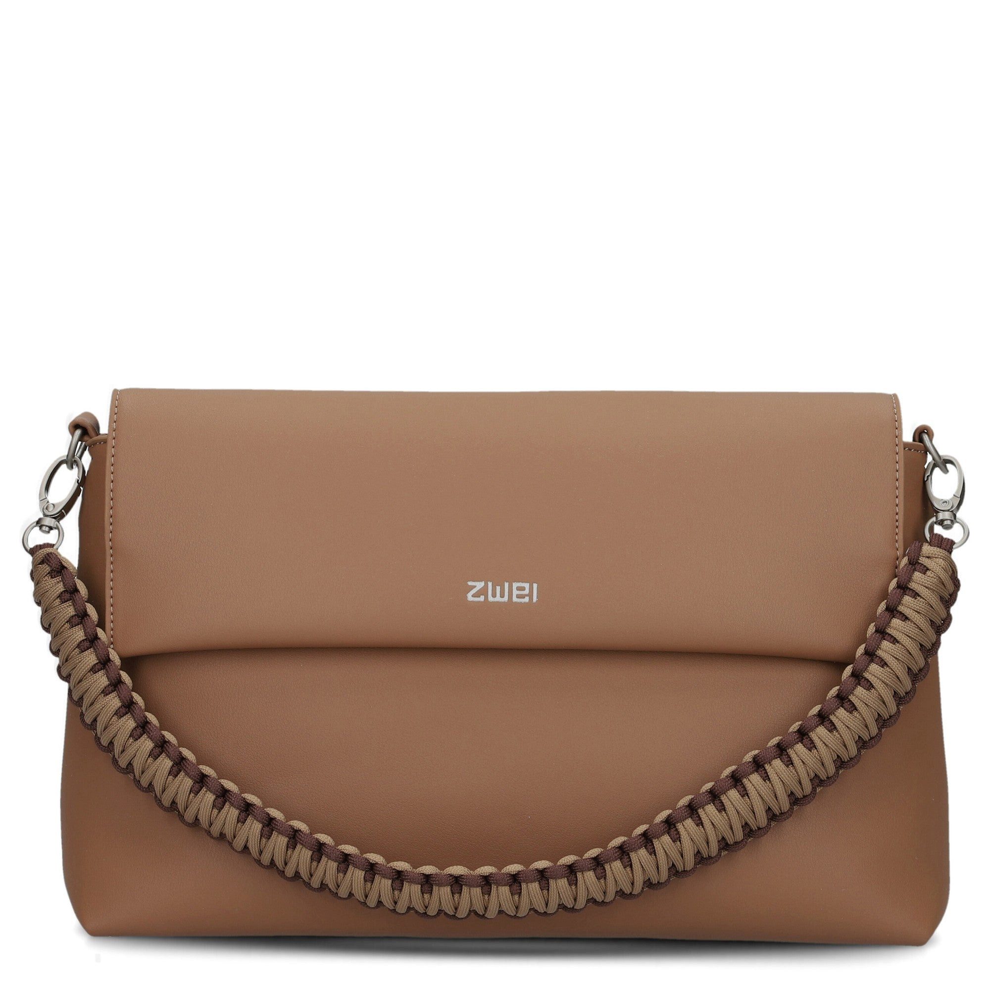 Elegantes Design: Die Handtasche besticht durch ihr puristisches Aussehen und den stylischen Makramee-Schultergurt