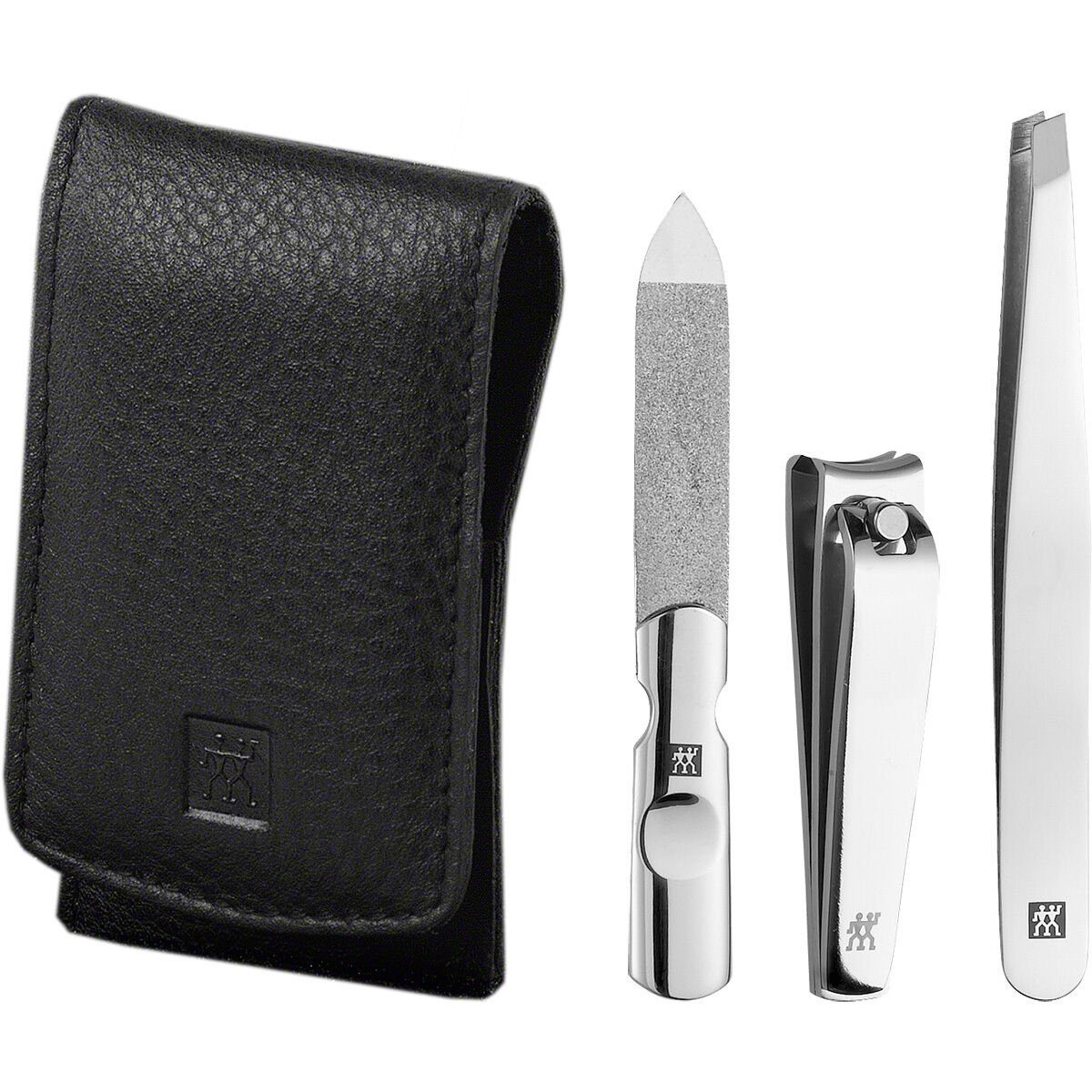 Zwilling Maniküre-Set "Classic Inox", 3-teilig, schwarz SCHÖNHEITSPFLEGE MIT KLASSE Mit ZWILLING Classic Inox machen Sie Ihre Körperpflege zum individuellen Wellness- Programm. ZWILLING Classic Inox weiß mit edlen, polierten Instrumenten und hochwertigen Lederetuis auch optisch zu gefallen. Das umfangreiche Меню enthält alle Instrumente, die Sie sich für Ihre tägliche Körperpflege wünschen. Die Instrumente liegen perfekt in der Hand und lassen sich intuitiv bedienen. Jedes Detail ist so gestaltet, dass es seine Funktion optimal erfüllt. Hochwertiger, rostfreier Edelstahl und sorgfältige Verarbeitung stellen sicher, dass die Instrumente ästhetisch wie funktional lange Zeit ihre Klasse bewahren. In diesem Taschenetui befindet sich eine Nagelfeile, ein Nagelklipser und eine Pinzette der Marke Zwilling.