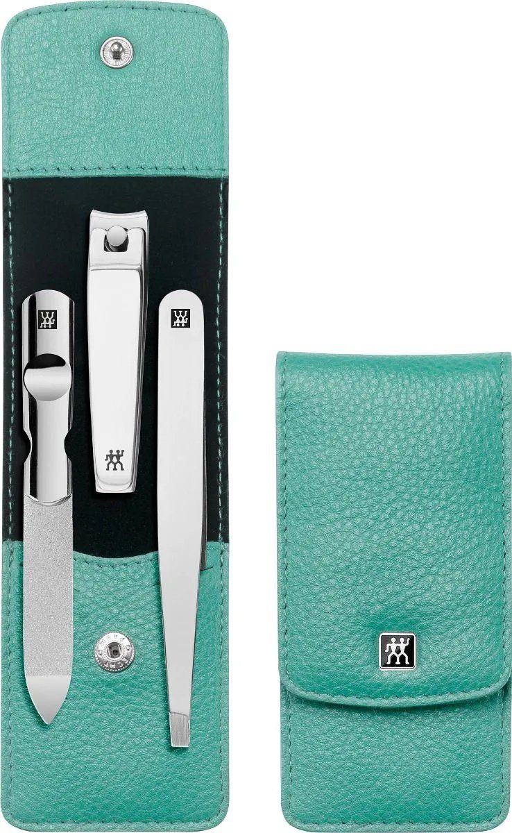 ZWILLING Maniküre Pediküre Set 3tlg. mit Nagelknipser,Mint, Promoset Beschreibung Das hochwertige 3-teilige Nagelpflege-Set aus der CLASSIC INOX Serie vereint die wichtigsten Instrumente für die tägliche Nagelpflege in einem modernen Leder-Etui in der Trendfarbe Mintl. Details » Hochwertiges & praktisches Maniküre Set in der Trendfarbe Mint » Bestehend aus Nagelknipser, Saphir-Nagelfeile und schräger Pinzette » Instrumente aus rostfreiem, poliertem Edelstahl » Langlebigkeit, Funktionalität und ein besonders attraktives Preis-Leistungs-Verhältnis » Präzise Verarbeitung für exzellente Schärfe