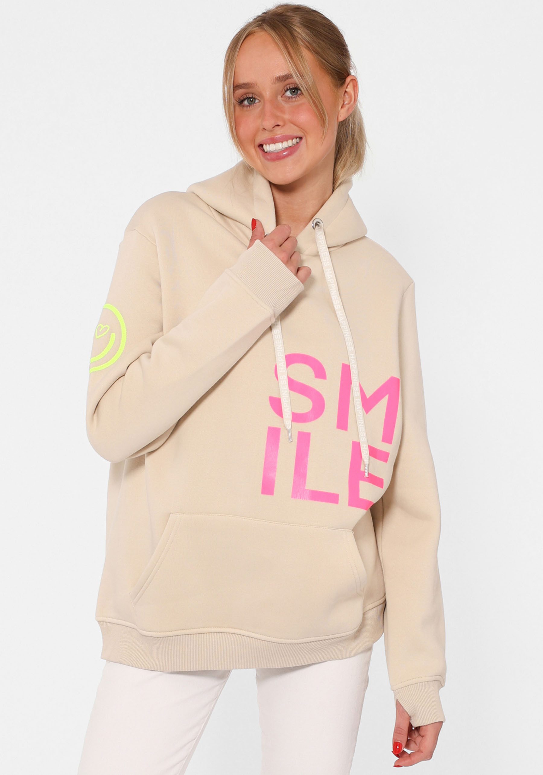 Besondere Merkmale | Langarm, Kapuze, Neon-Details, Kordelzug, Frontprint, Kängurutasche |