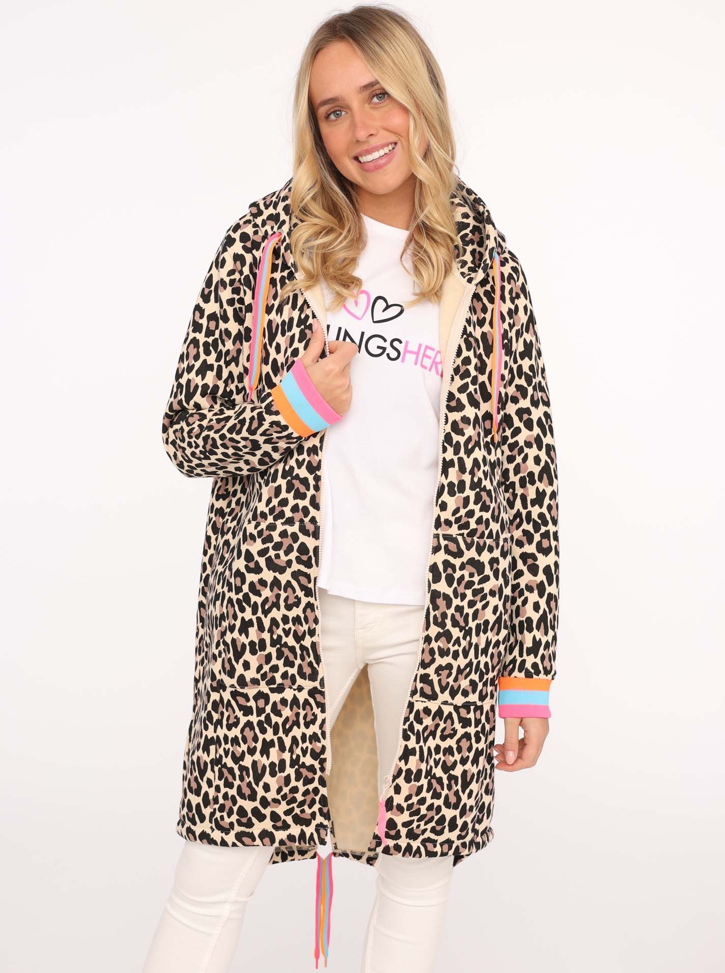 Für den souveränen Auftritt oder den langen Spaziergang im Park — der Damen-Jerseymantel »Leo allover Neon Kante« von Zwillingsherz ist eine gute Idee für deine Outfits!