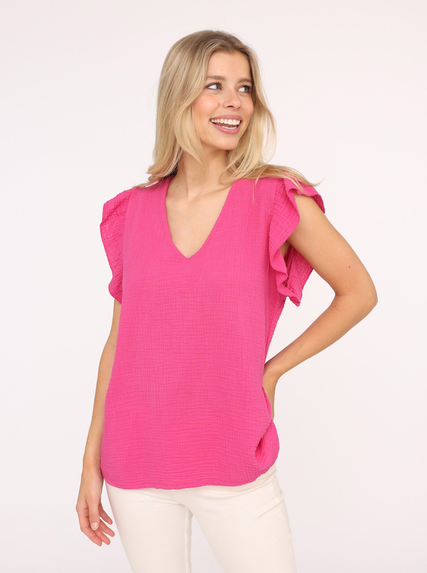 Besondere Merkmale | tiefer V-Ausschnitt, Rüschenärmel, Baumwolle |