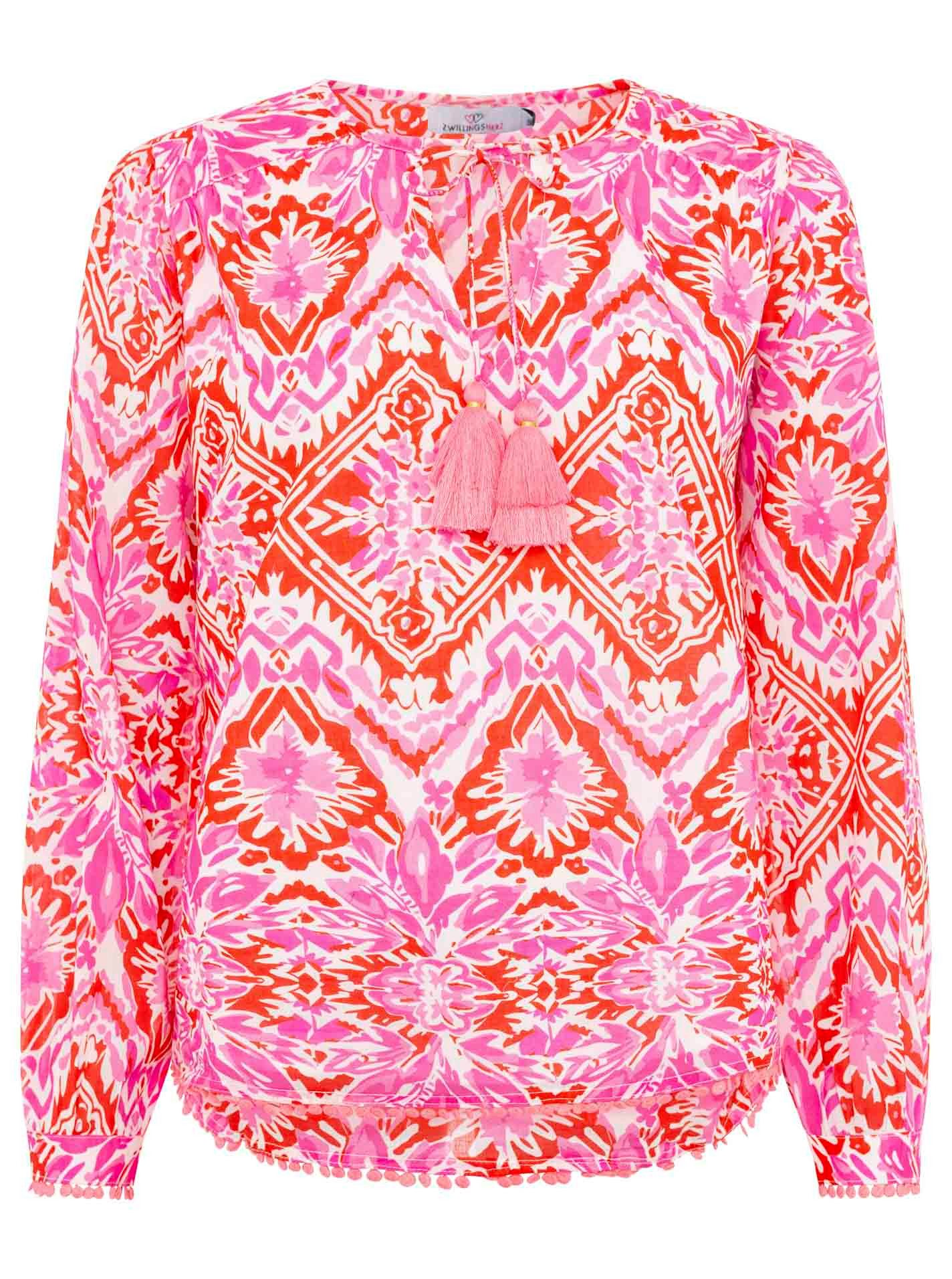 Gesucht und gefunden: Schau dir die Shirtbluse »Tröpfchen« von Zwillingsherz mal genauer an. Diese Bluse hat einen Serafino-Ausschnitt und ist hüftlang sowie locker geschnitten, sodass der Oberkörper locker betont wird.