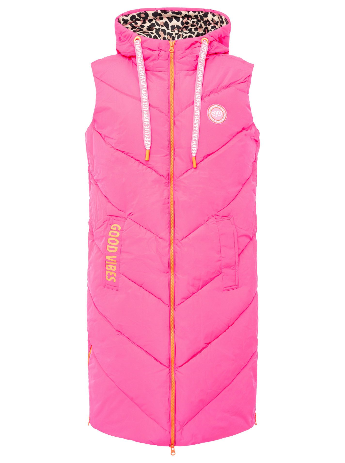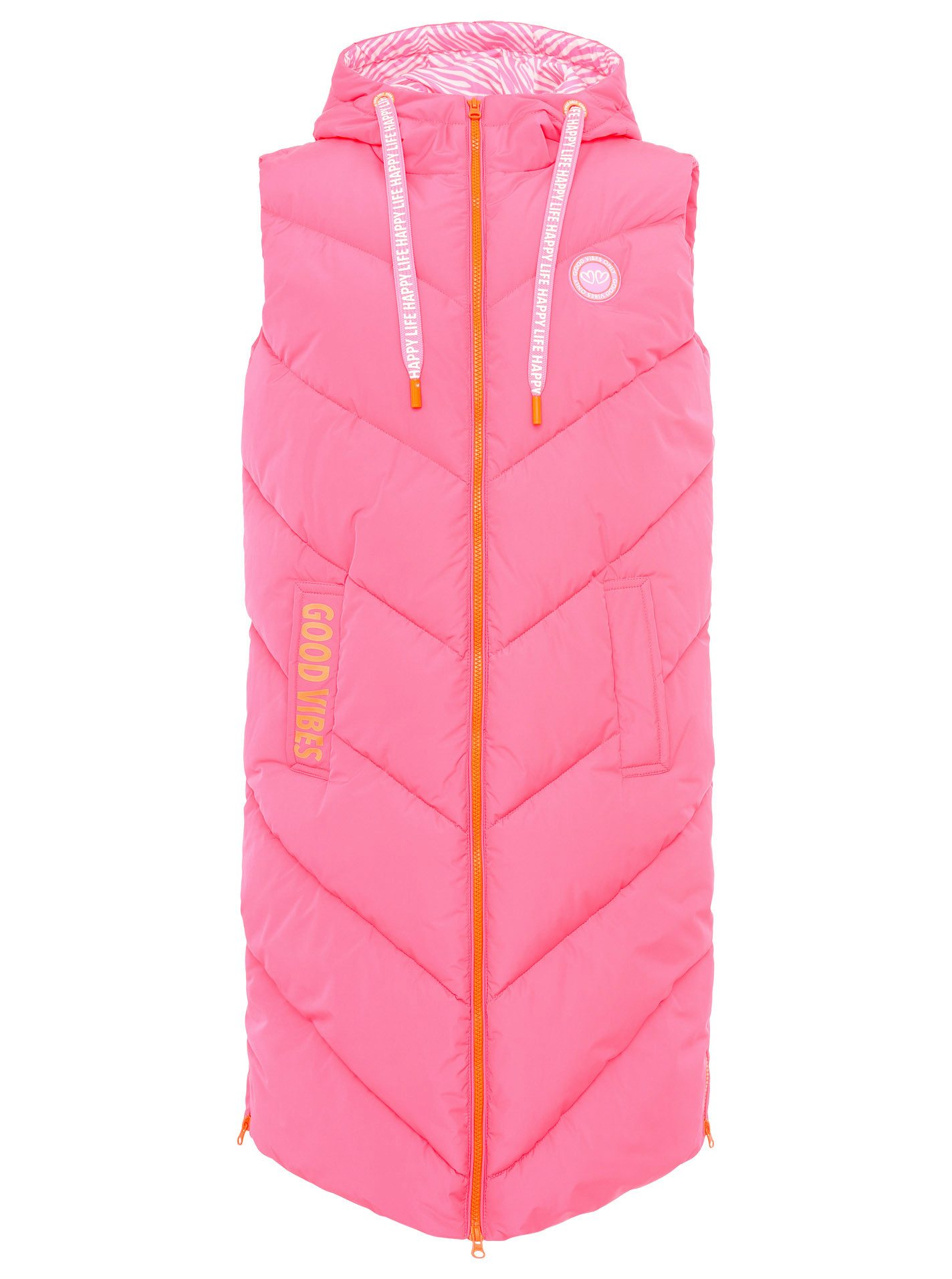 Mit der Steppweste »Wild Hearts« von Zwillingsherz kommst du auf deine Kosten. Der Patch sorgt für dekorative Details. Der Schnitt der Steppweste ist knielang und basic, so fühlst du dich rundum wohl in deinem Outfit. Die Kapuze kannst du mit einem Kordelzug in der Weite verstellen. Dank der Fütterung hält sie dich warm.
