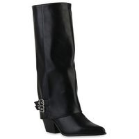 Ital-Design Modischer Damen-Stiefel mit Schnallen für Alltag und Freizeit Westernstiefel (90110036) Blockabsatz Сапоги in Schwarz