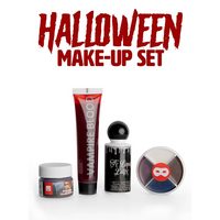 Maskworld Theaterschminke Halloween Make-up Set - Halloween Schminke Zombie, Horror Schminkset mit Blut, Wundschorf und Schminkfarben für alle Zom